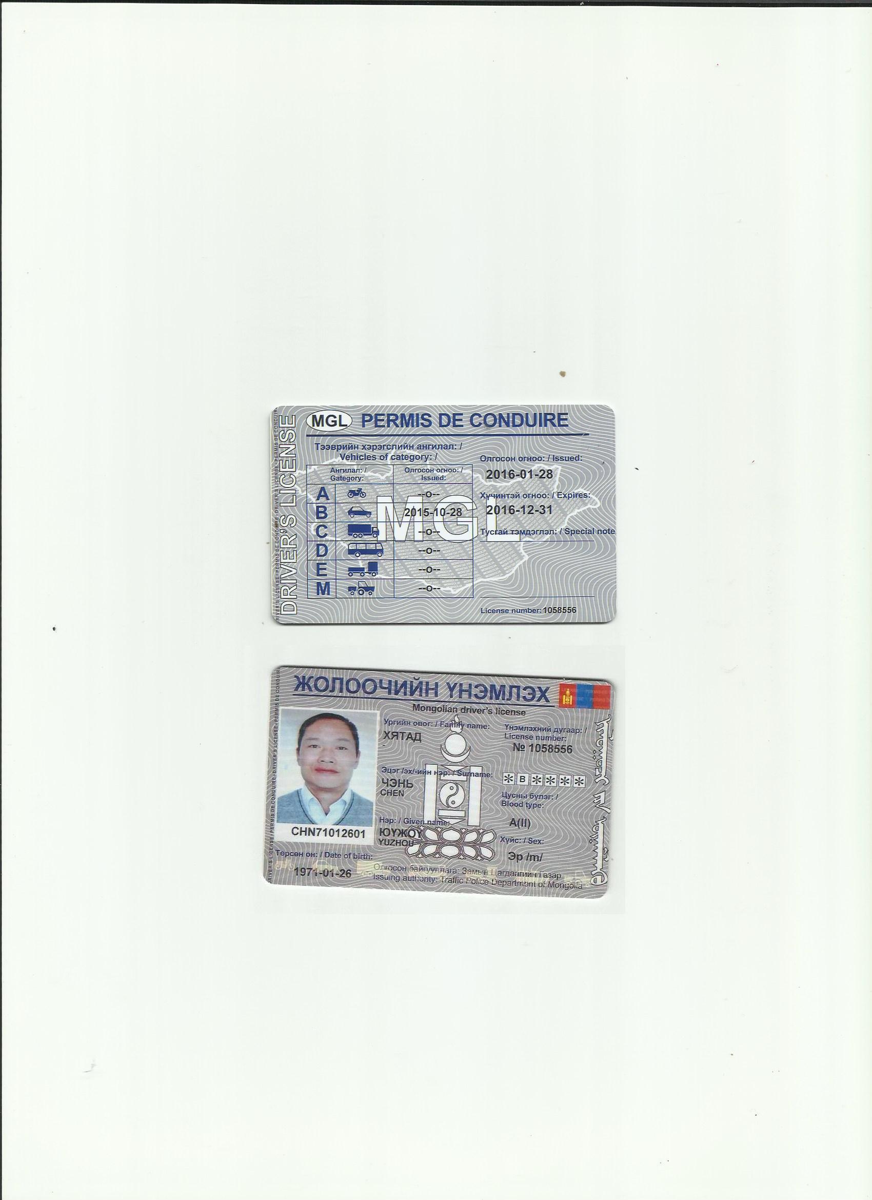蒙古国驾照翻译模版-咸阳市车管所认可翻译机构