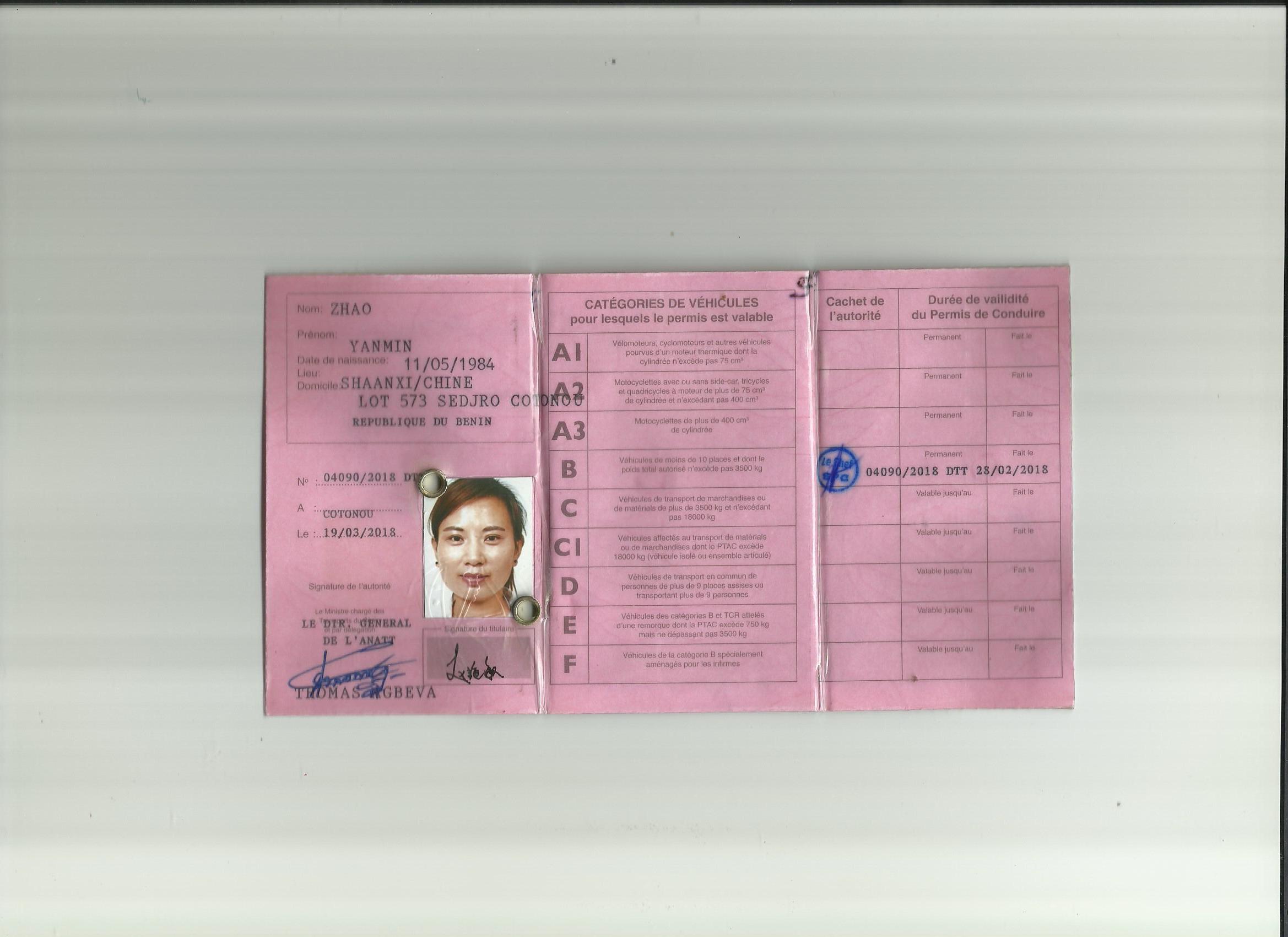 陕西省咸阳市阿博尔翻译服务有限公司 持境外机动车驾驶证换证 咸阳市政府翻译 非洲贝宁驾照翻译模版