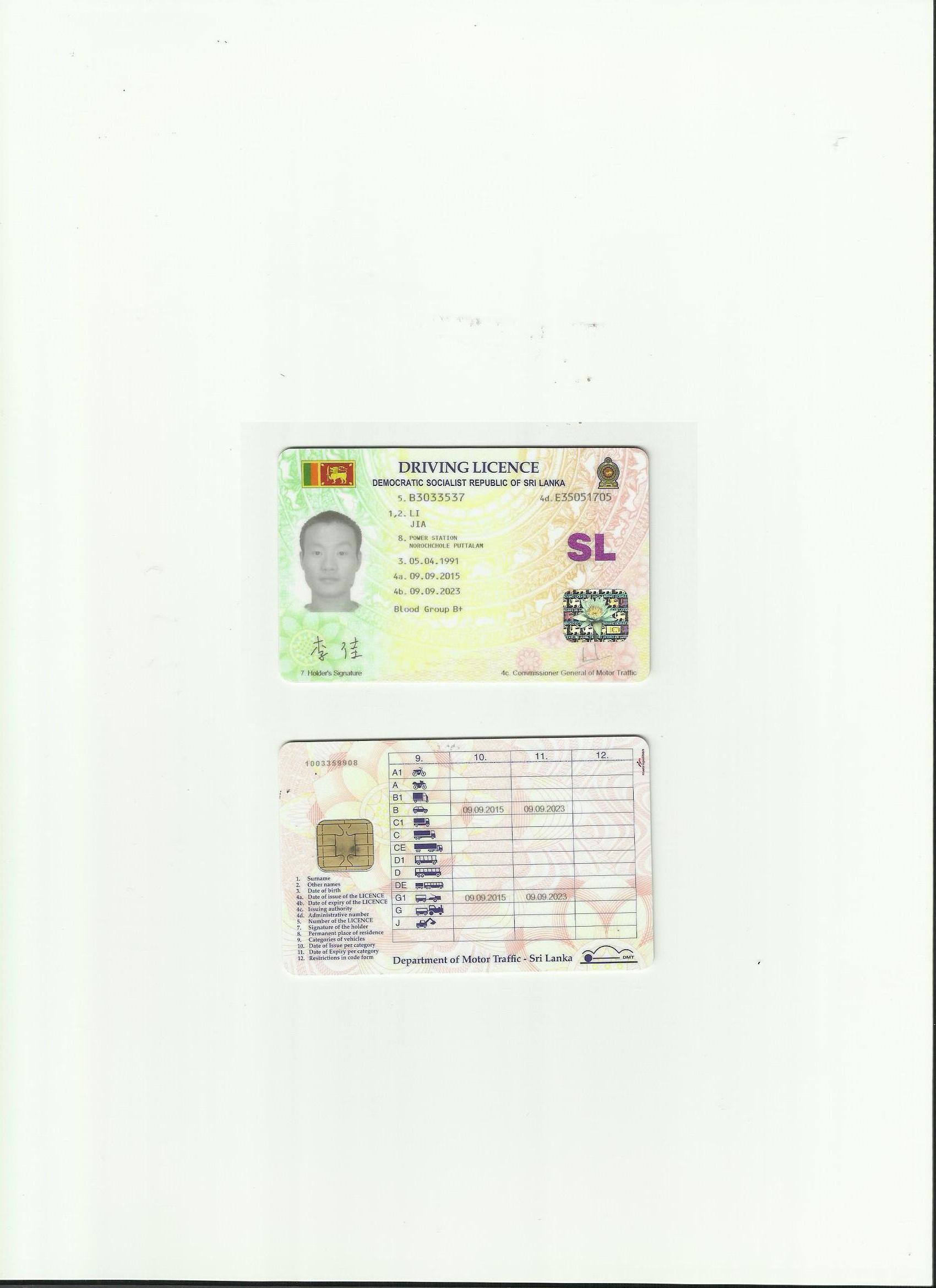 斯里兰卡驾照翻译模版-咸阳车管所认可-盖章