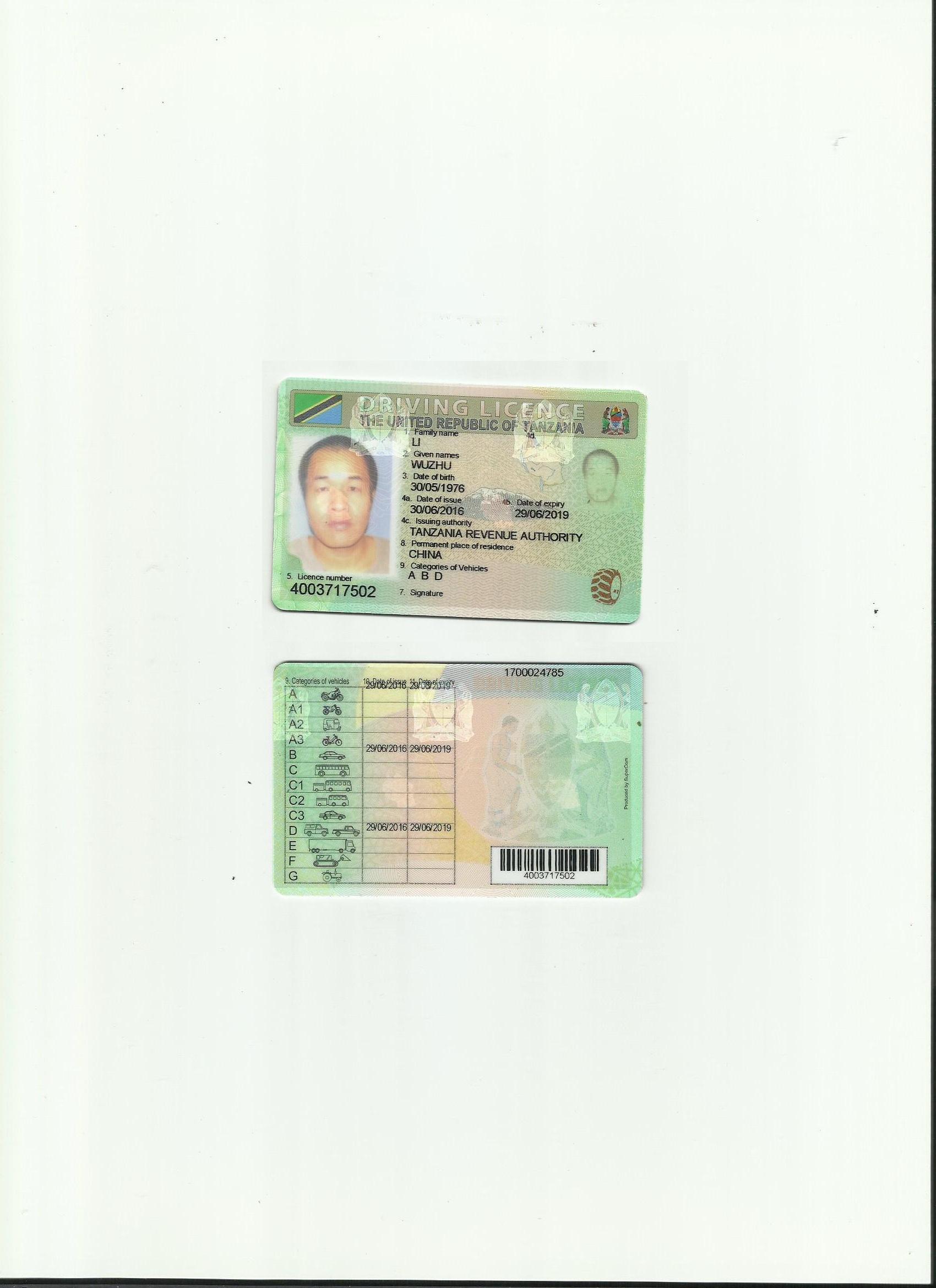 坦桑尼亚驾照翻译模版-咸阳市车管所认可翻译机构-国外驾照翻译