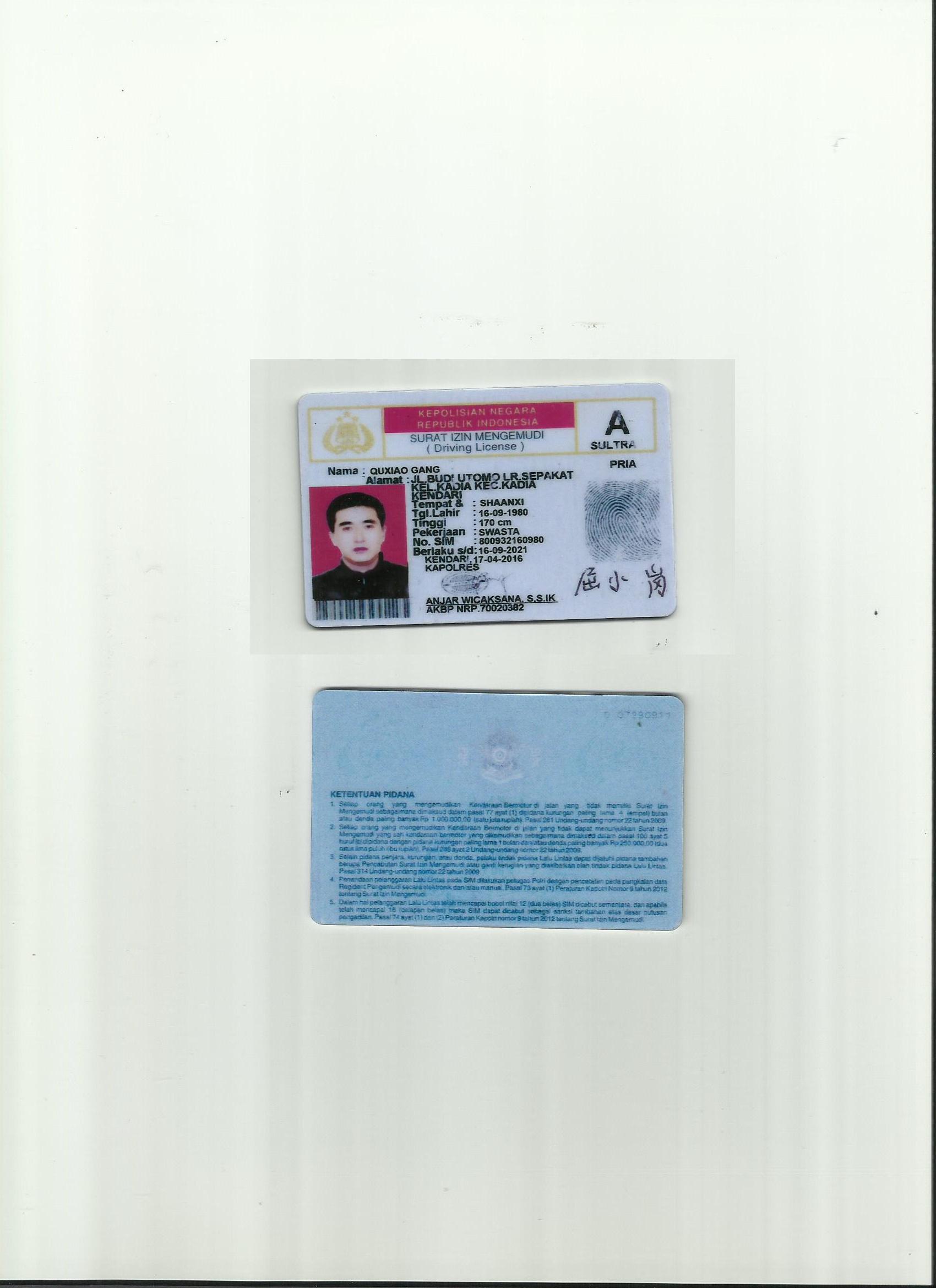 咸阳市车管所认可翻译机构-印尼驾照翻译模版
