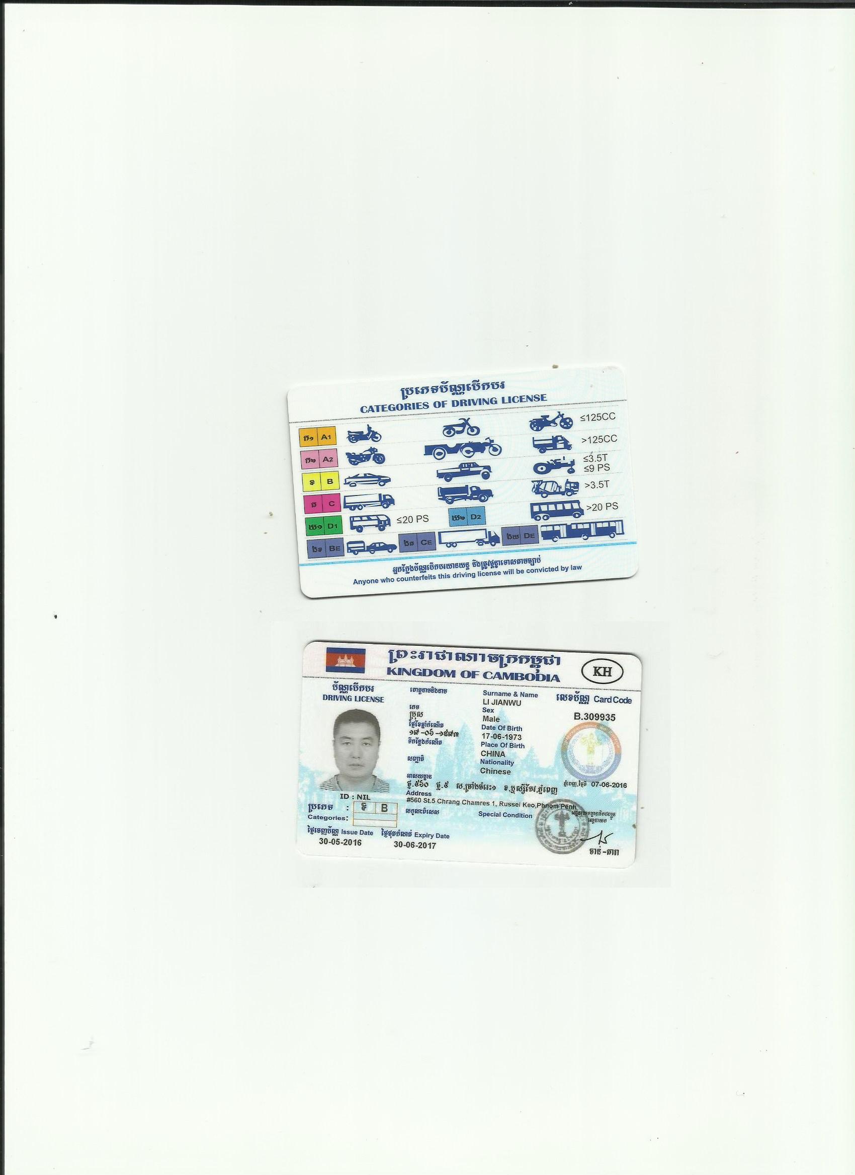 咸阳市车管所认可翻译机构-柬埔寨驾照翻译模版