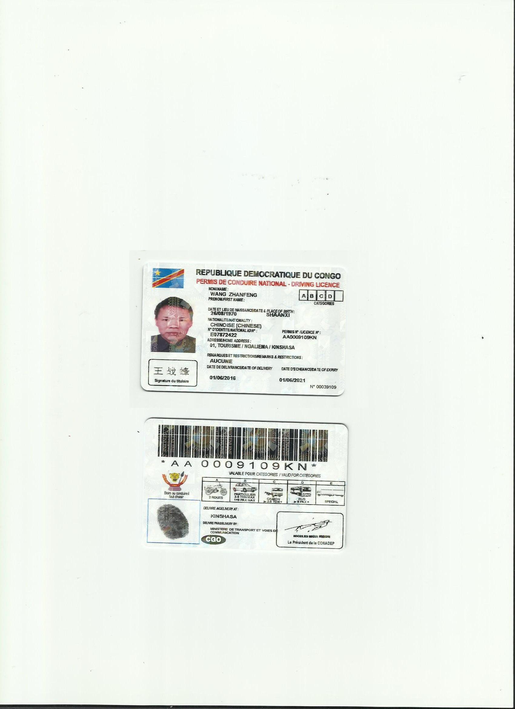 咸阳市车管所认可翻译中心-刚果金驾照翻译模版