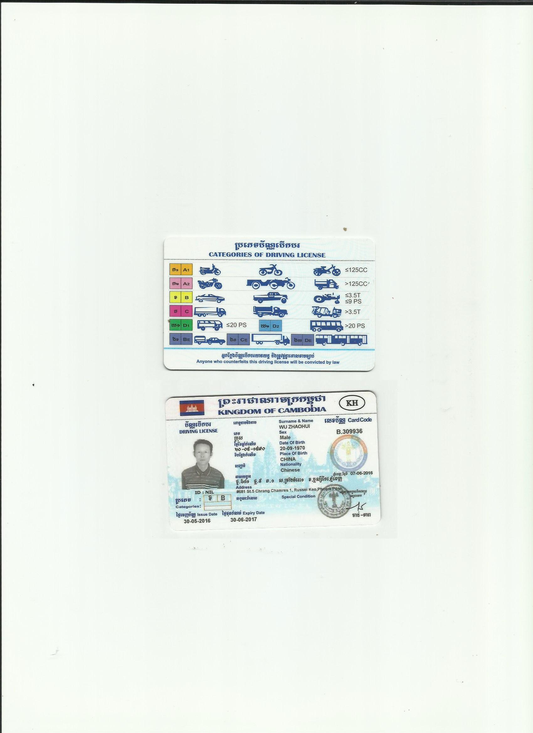 咸阳市车管所指定翻译机构-柬埔寨驾照翻译模版