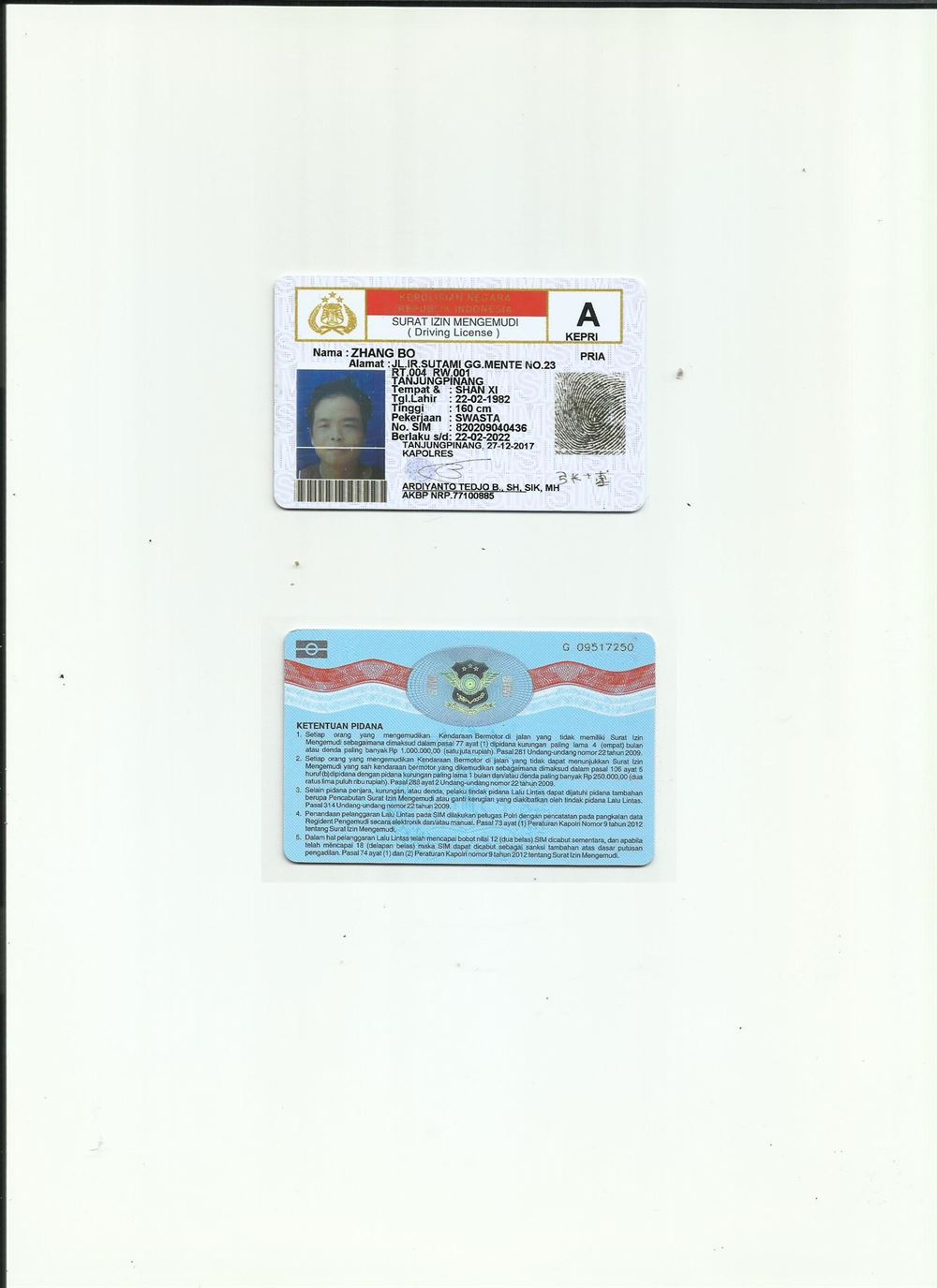 印尼驾照翻译模版 咸阳翻译 政府指定咸阳翻译 公安 车管所