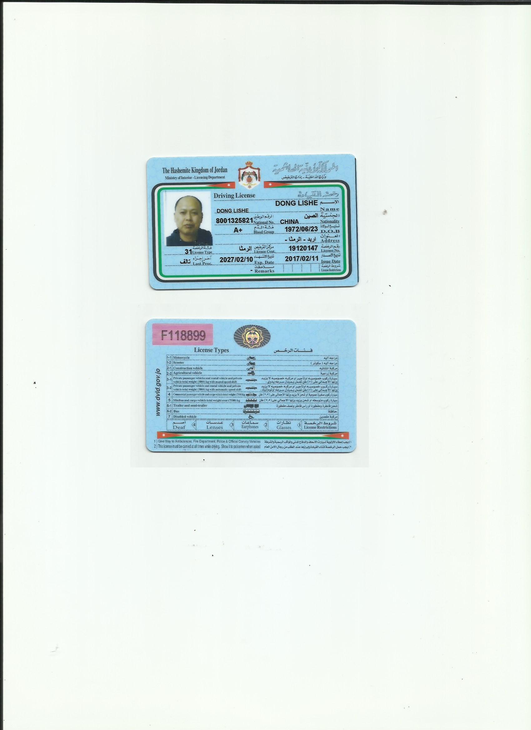 约旦驾照翻译模版-咸阳车管所驾照翻译-找阿博尔翻译-方便快捷、更加专业
