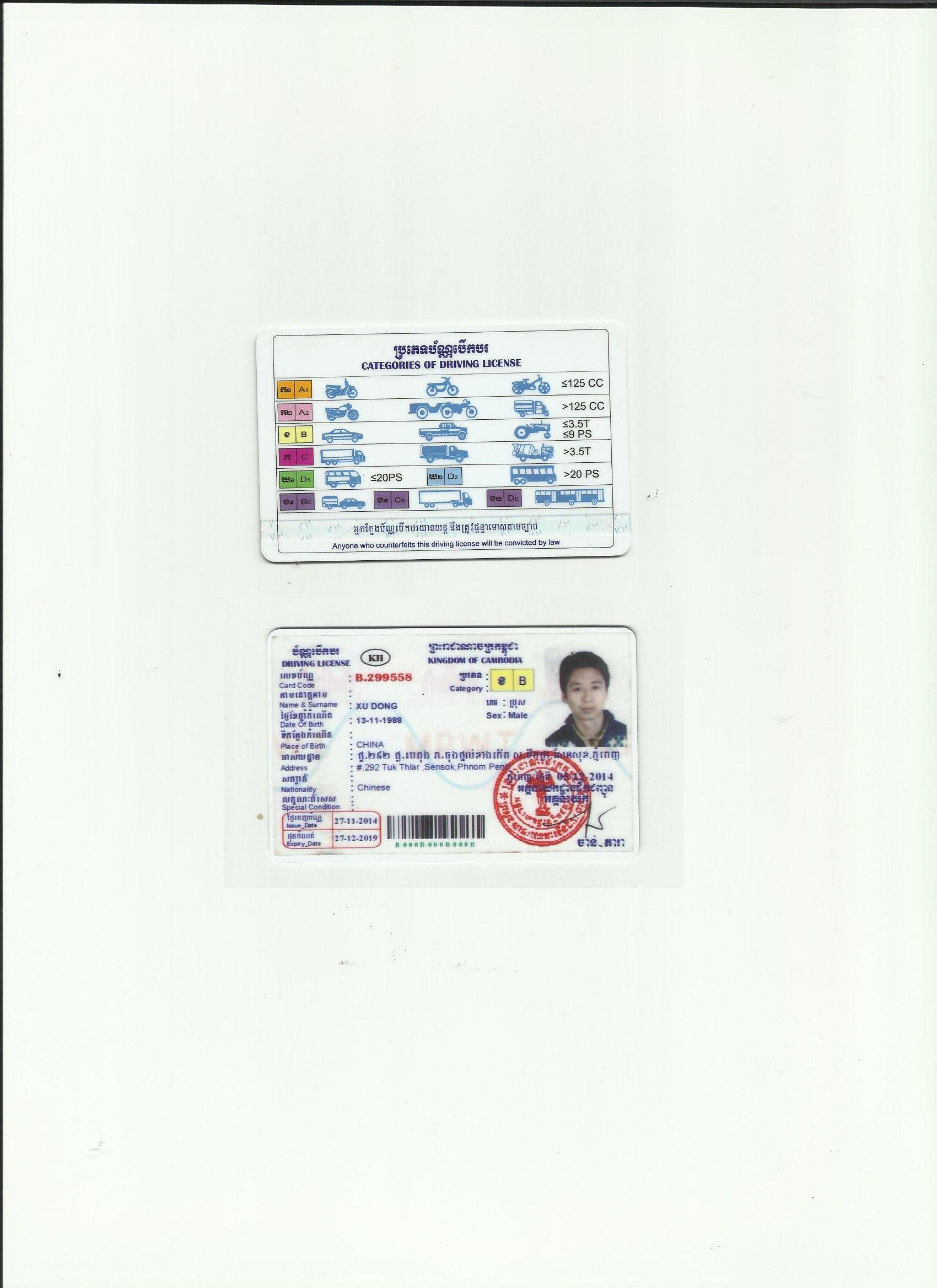 柬埔寨驾照翻译模版-咸阳市车管所认可翻译机构