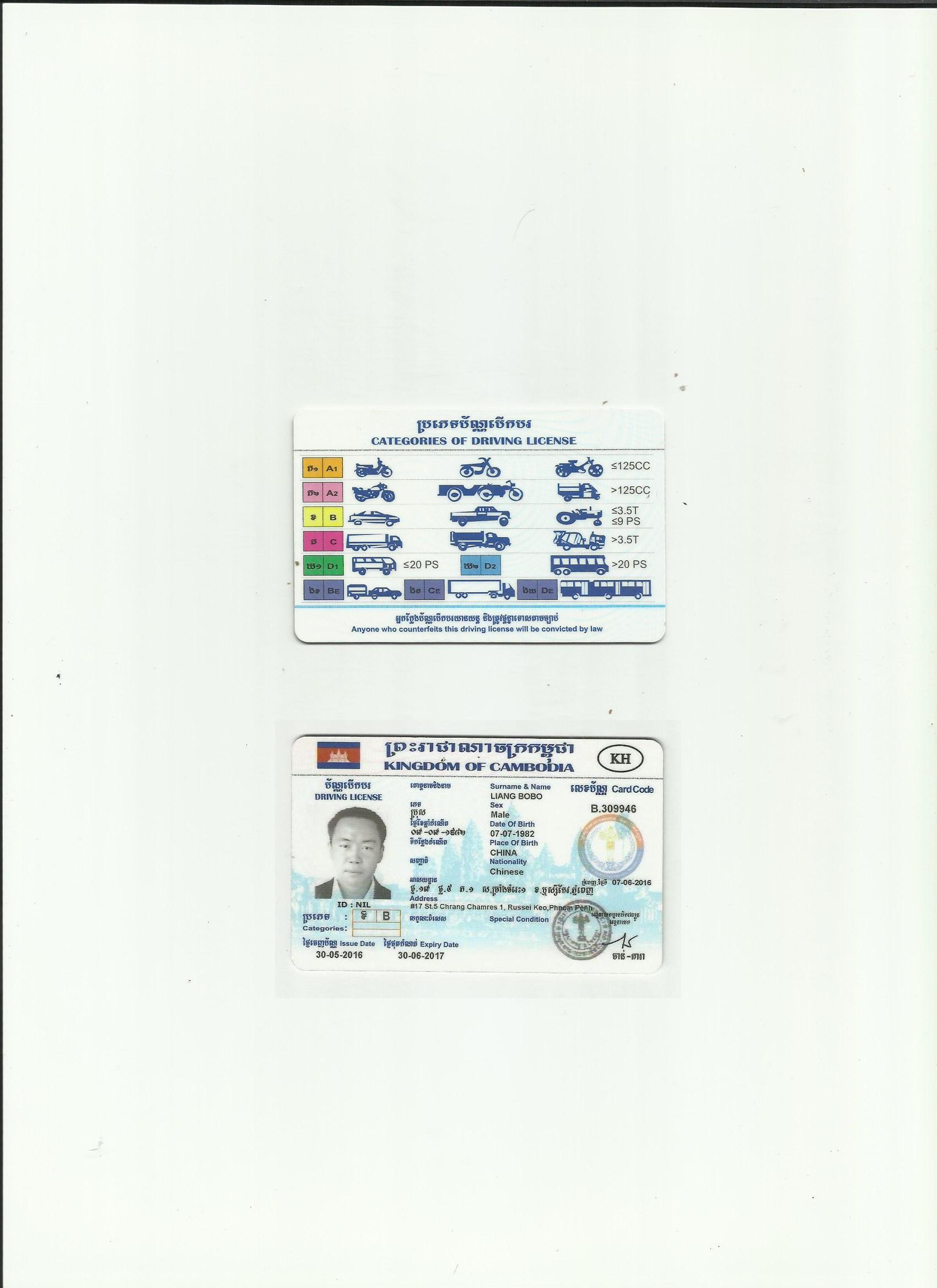 柬埔寨驾照翻译模版-咸阳市车管所认可翻译机构