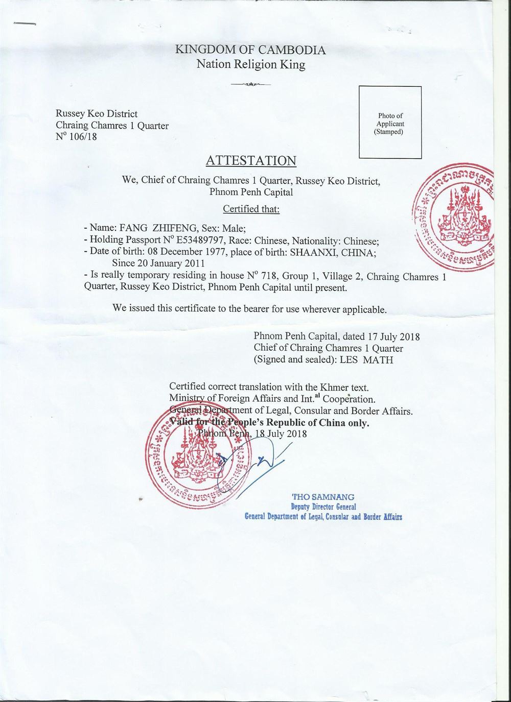 柬埔寨华侨证明翻译 咸阳证件翻译盖章 成绩单翻译 户口薄翻译 驾照翻译