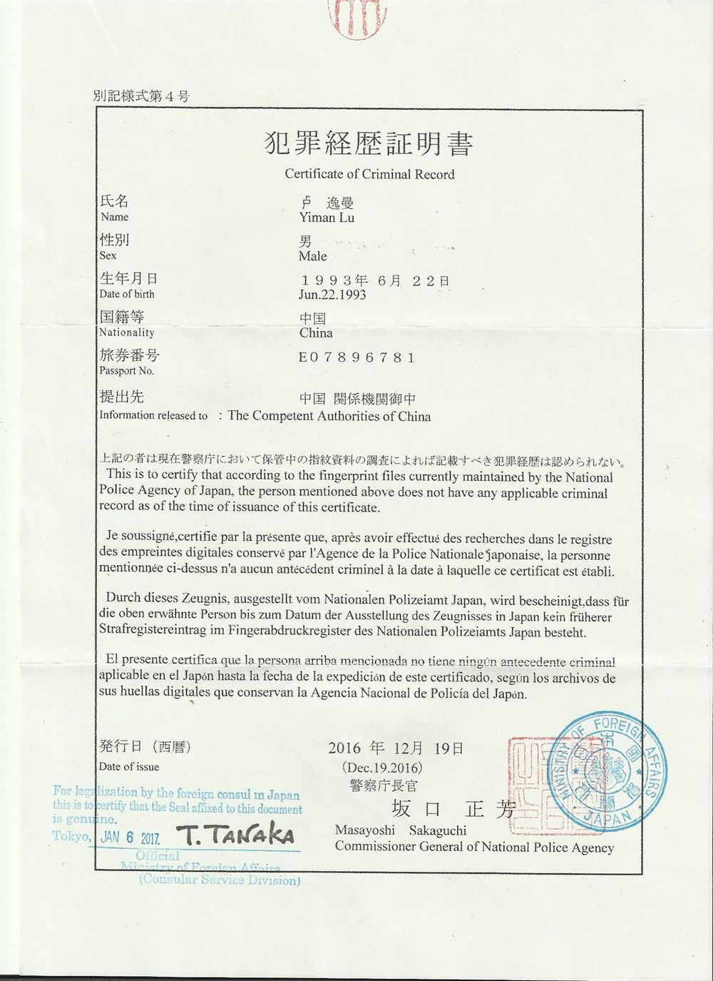 日本无犯罪记录翻译模版-各类证明翻译-随到随译-方便快捷