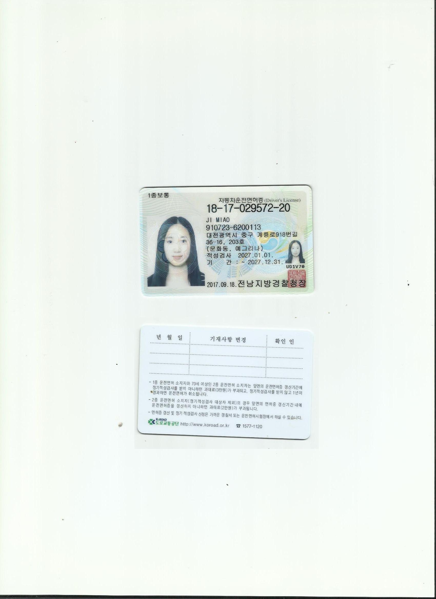 韩国驾照翻译模版 咸阳翻译 政府指定咸阳翻译 公安 车管所