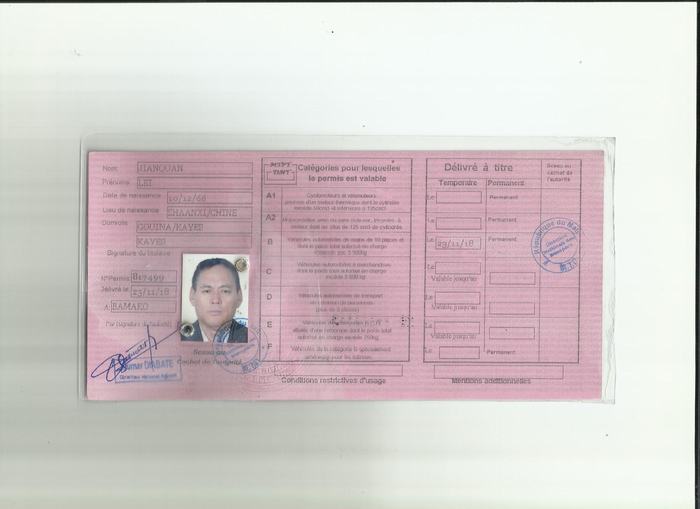 咸阳驾照翻译公司 咸阳车管所指定翻译公司 马里驾照翻译模版
