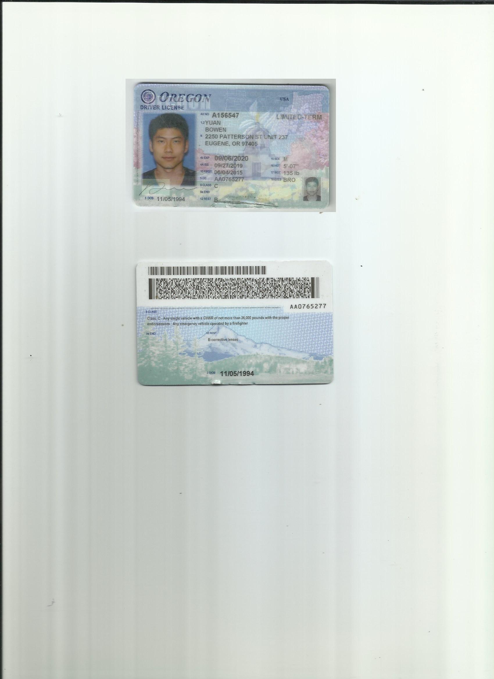 咸阳驾照翻译公司 咸阳车管所指定翻译公司 美国俄勒冈州驾照翻译模版