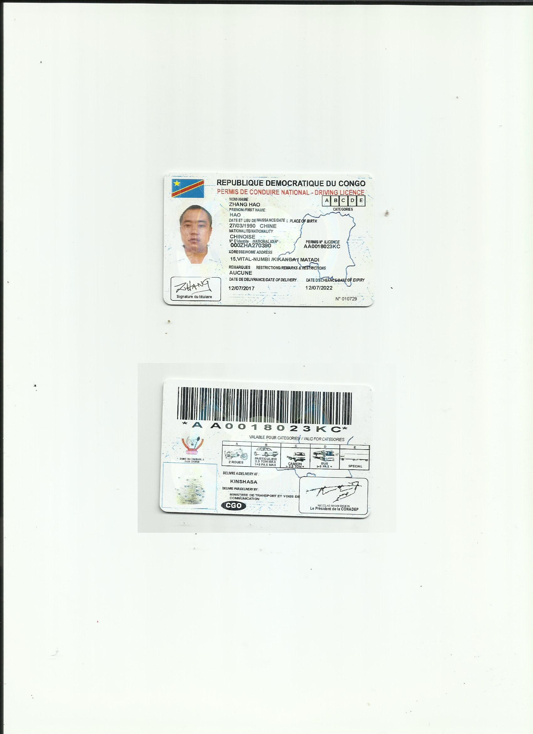 刚果金驾照翻译模版 咸阳翻译 政府指定咸阳翻译 公安 车管所