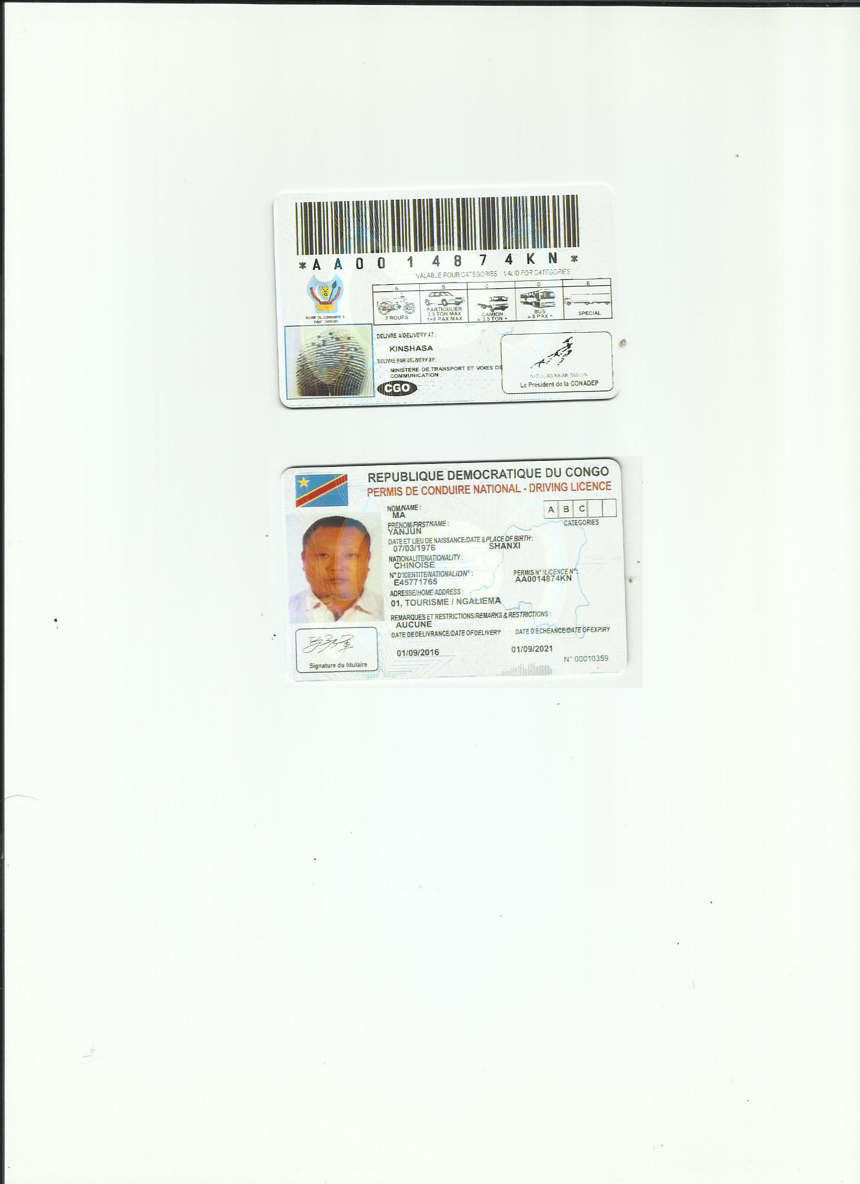 刚果金驾照翻译模版 陕西阿博尔翻译服务 持境外机动车驾驶证换证 咸阳市政府翻译