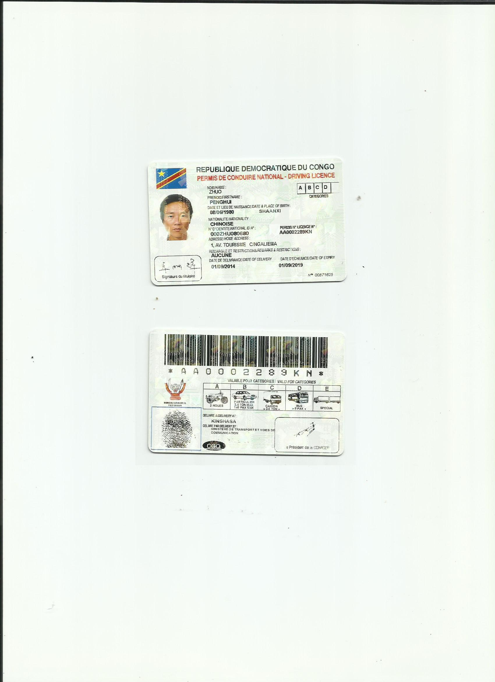 刚果金驾照翻译模版-咸阳外籍驾照翻译-咸阳证照翻译中心