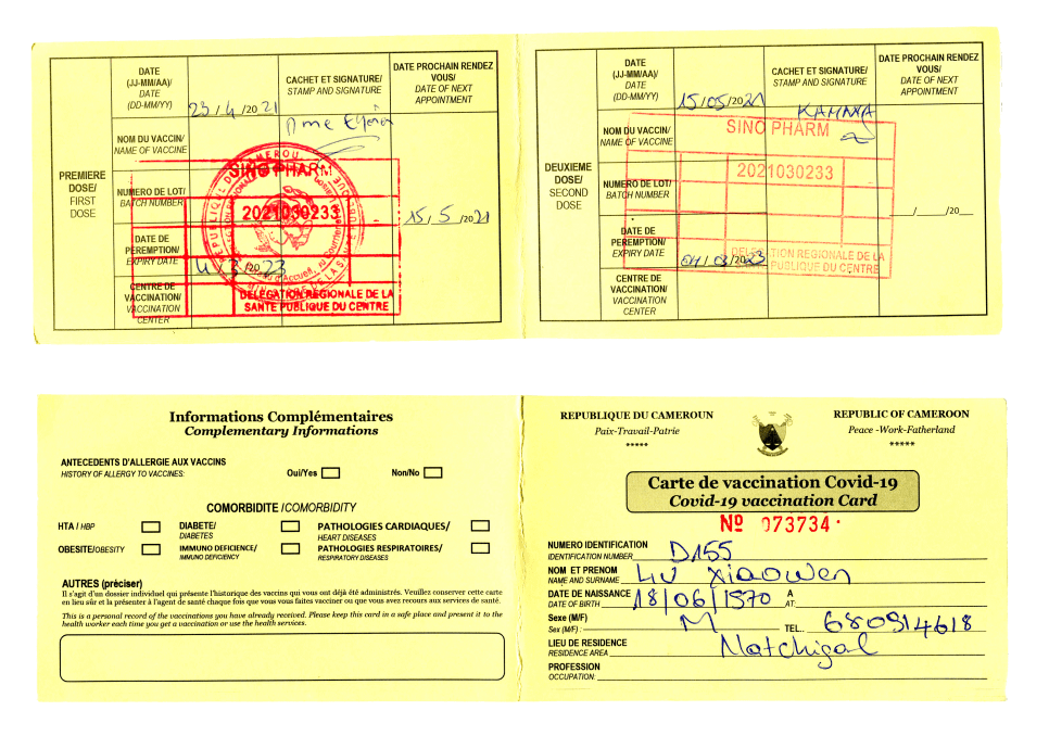 咸阳证件翻译盖章 成绩单翻译 户口薄翻译 驾照翻译 喀麦隆新冠疫苗接种卡翻译模版