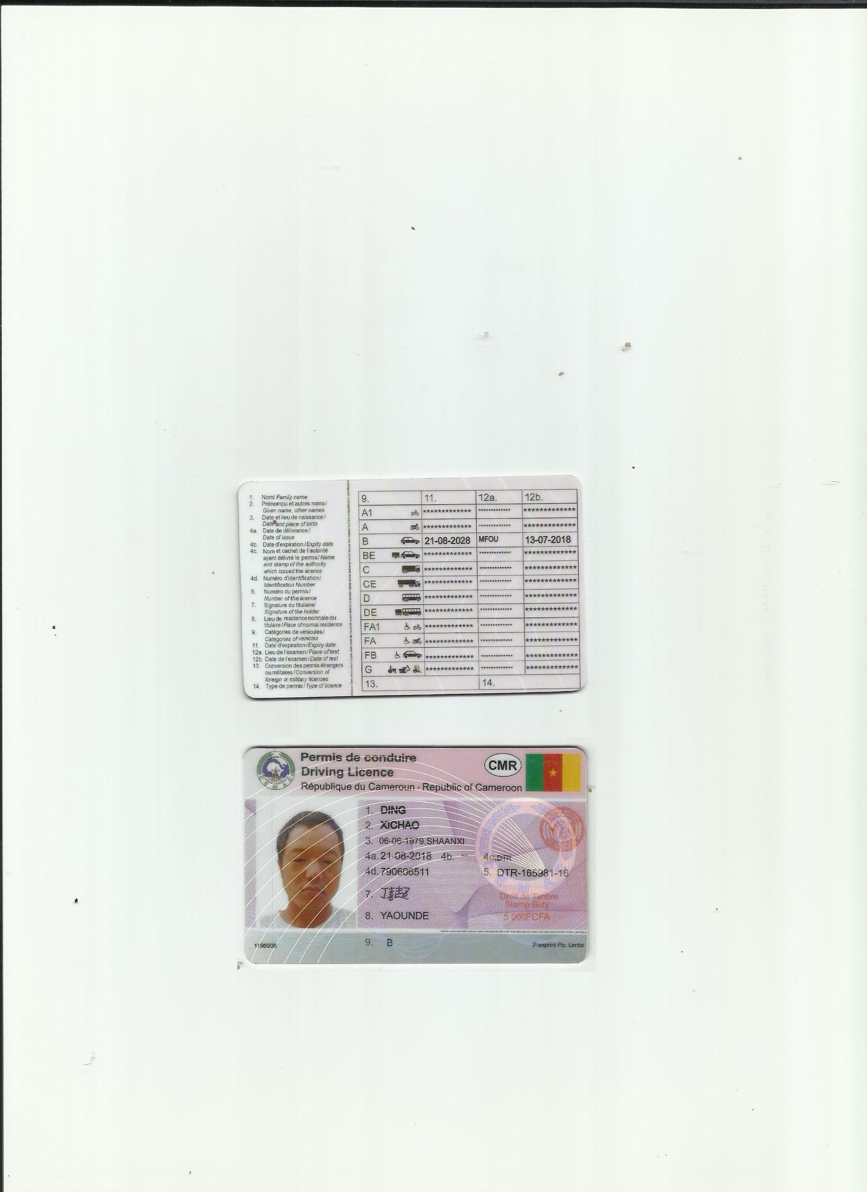 咸阳证件翻译盖章 成绩单翻译 户口薄翻译 驾照翻译 喀麦隆驾照翻译模版
