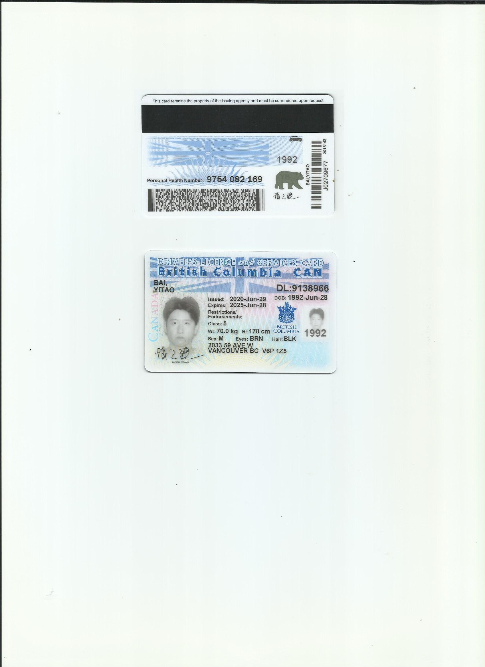咸阳证件翻译盖章 成绩单翻译 户口薄翻译 驾照翻译 加拿大-不列颠哥伦比亚省驾照翻译模版