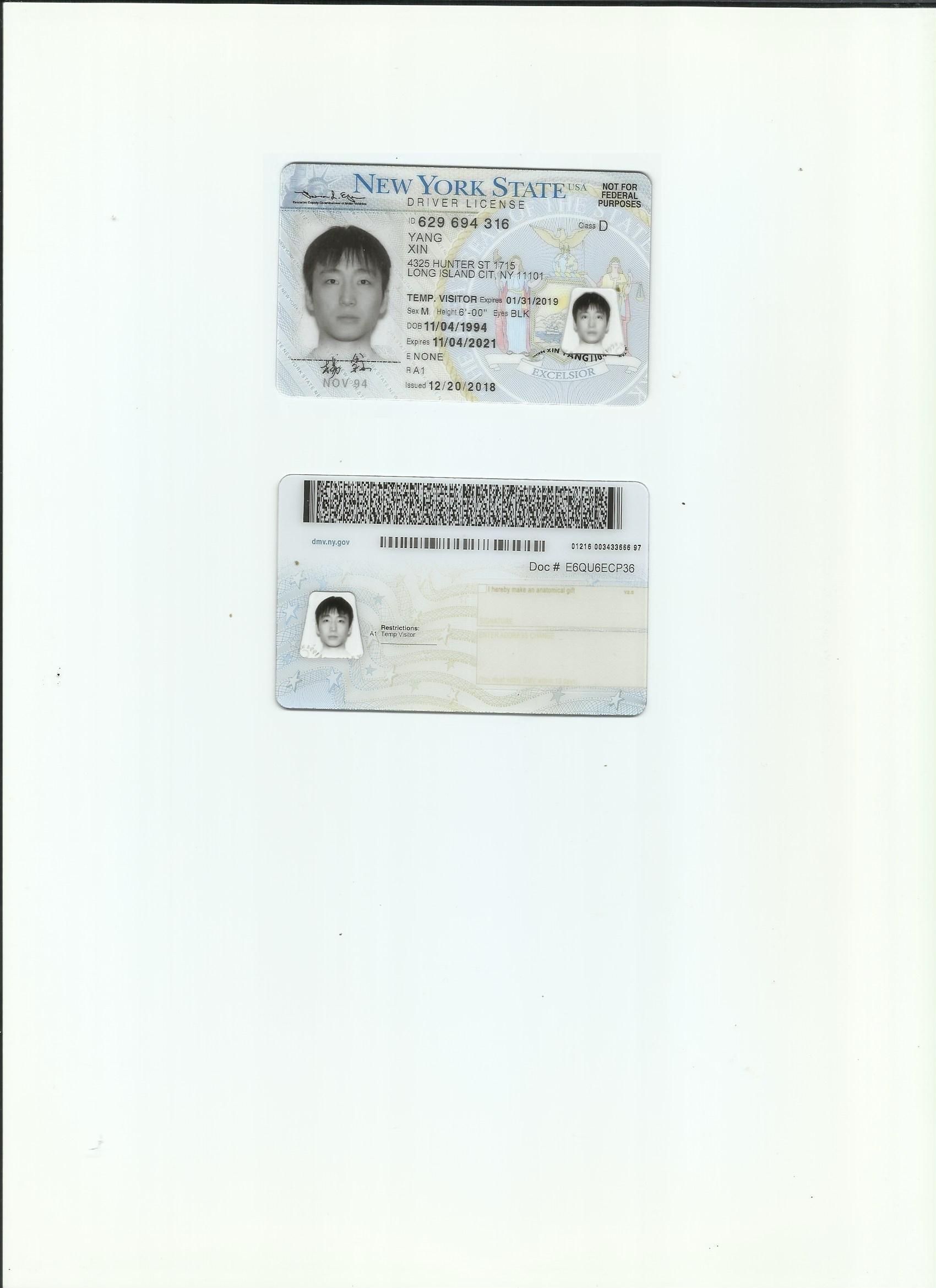 咸阳证件翻译盖章 成绩单翻译 户口薄翻译 驾照翻译 美国纽约驾照翻译模版