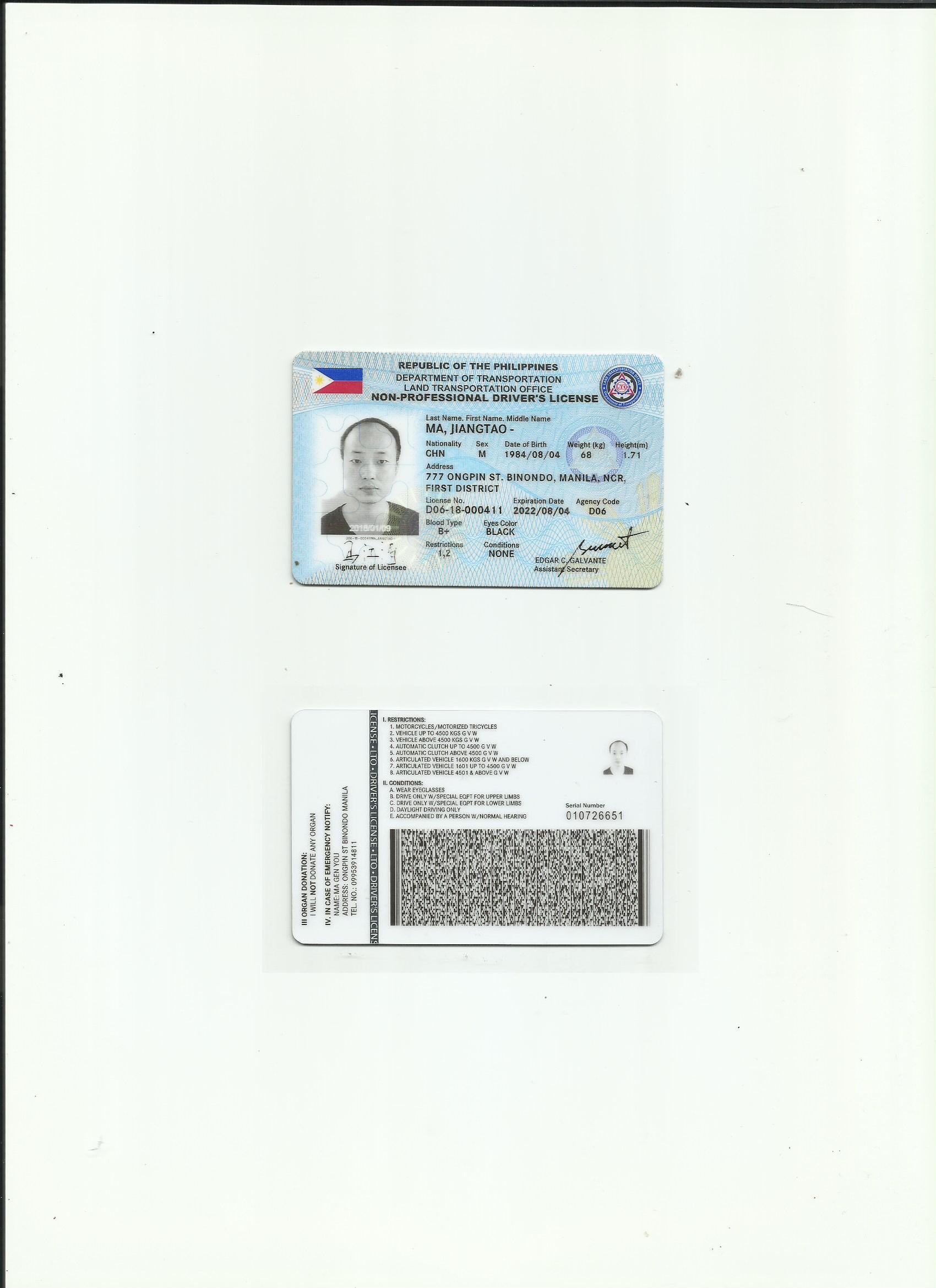 咸阳证件翻译盖章 成绩单翻译 户口薄翻译 驾照翻译 菲律宾驾照翻译模版