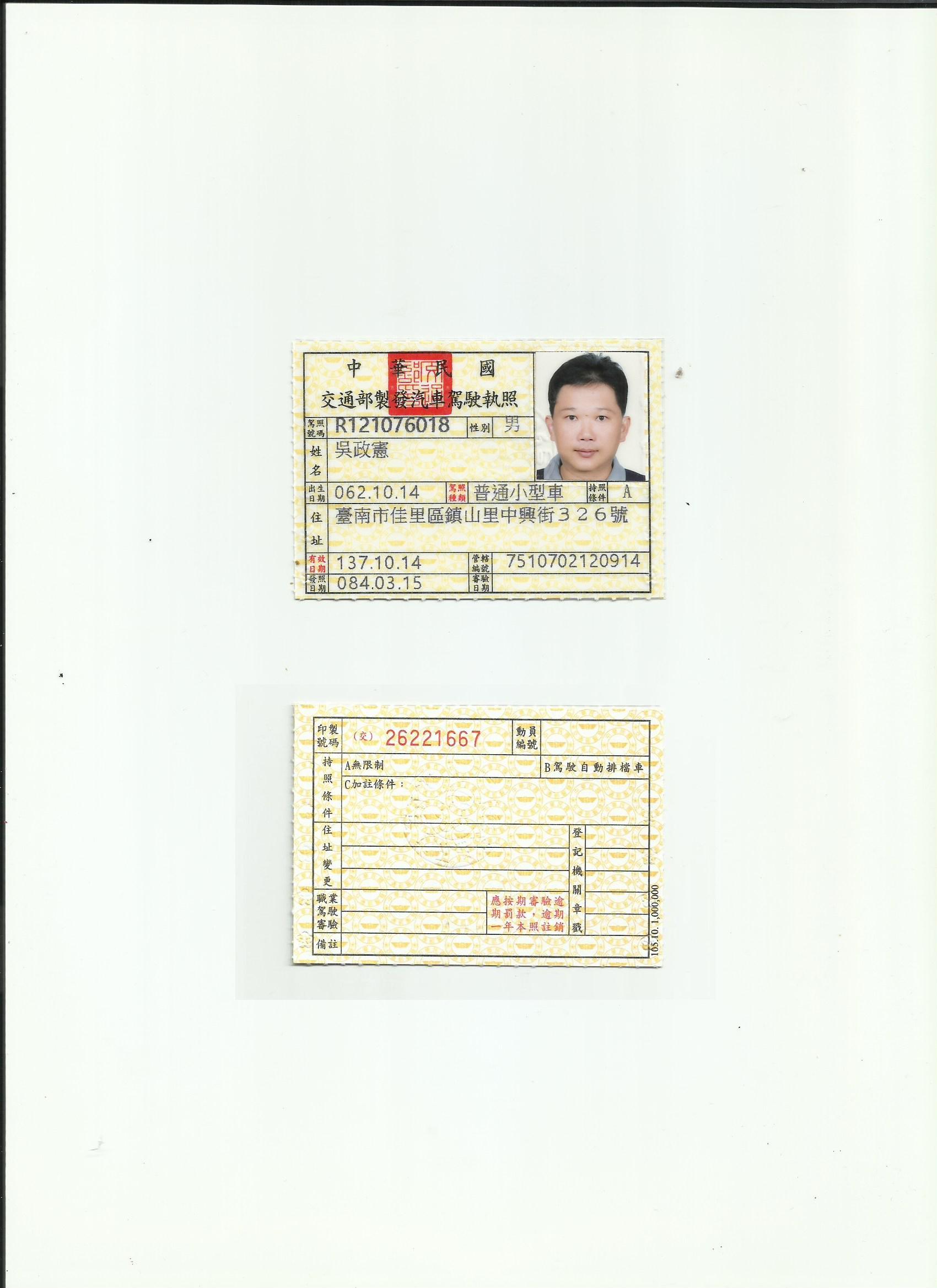 咸阳证件翻译盖章 成绩单翻译 户口薄翻译 驾照翻译 台湾驾照翻译模版