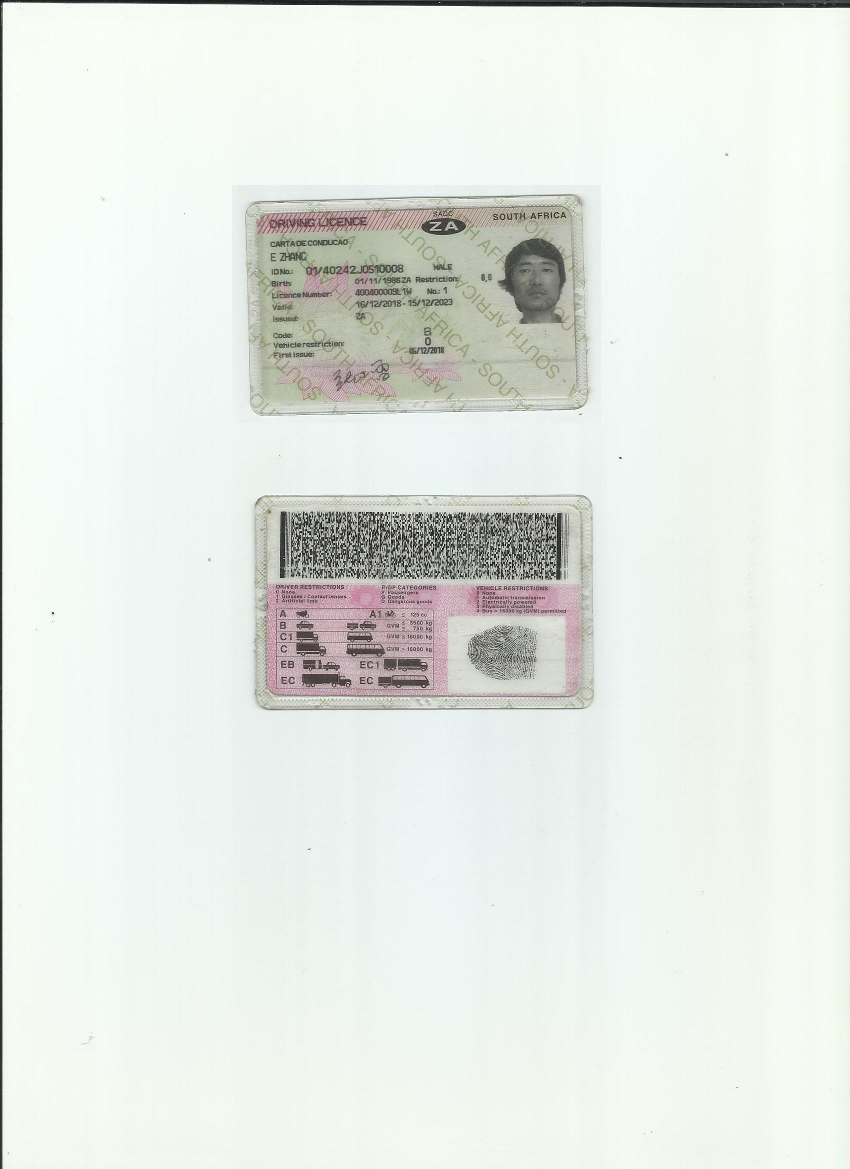 咸阳证件翻译盖章 成绩单翻译 户口薄翻译 驾照翻译 南非驾照翻译模版