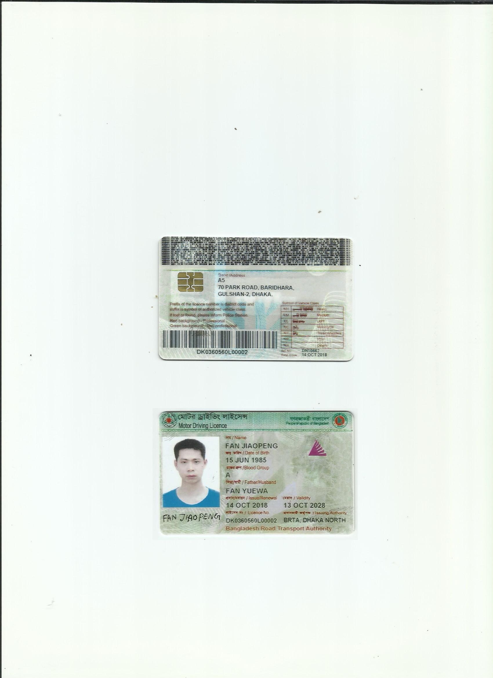 咸阳证件翻译盖章 成绩单翻译 户口薄翻译 驾照翻译 孟加拉国驾照翻译模版