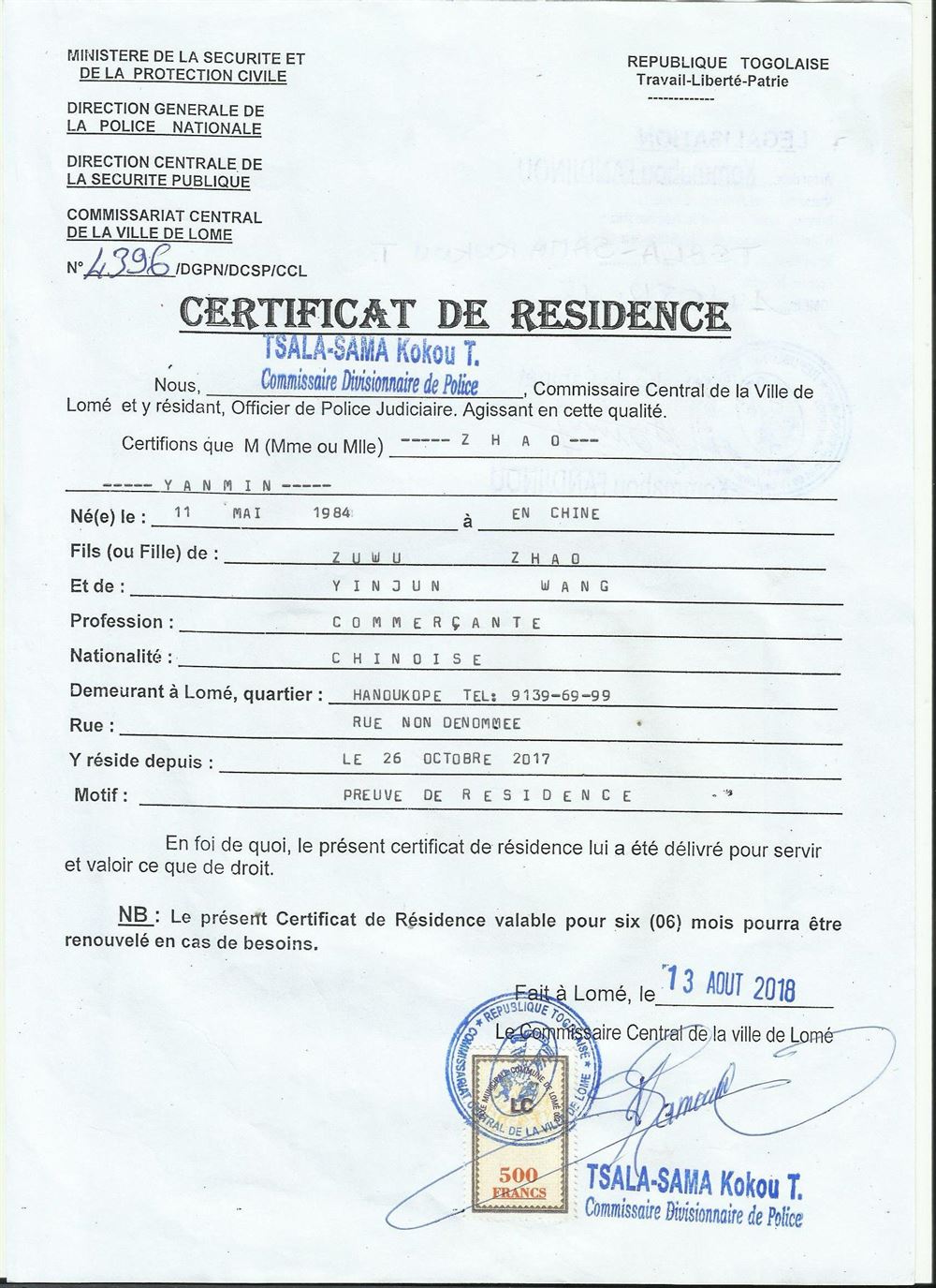 咸阳证件翻译盖章 成绩单翻译 户口薄翻译 驾照翻译 多哥证明翻译模版