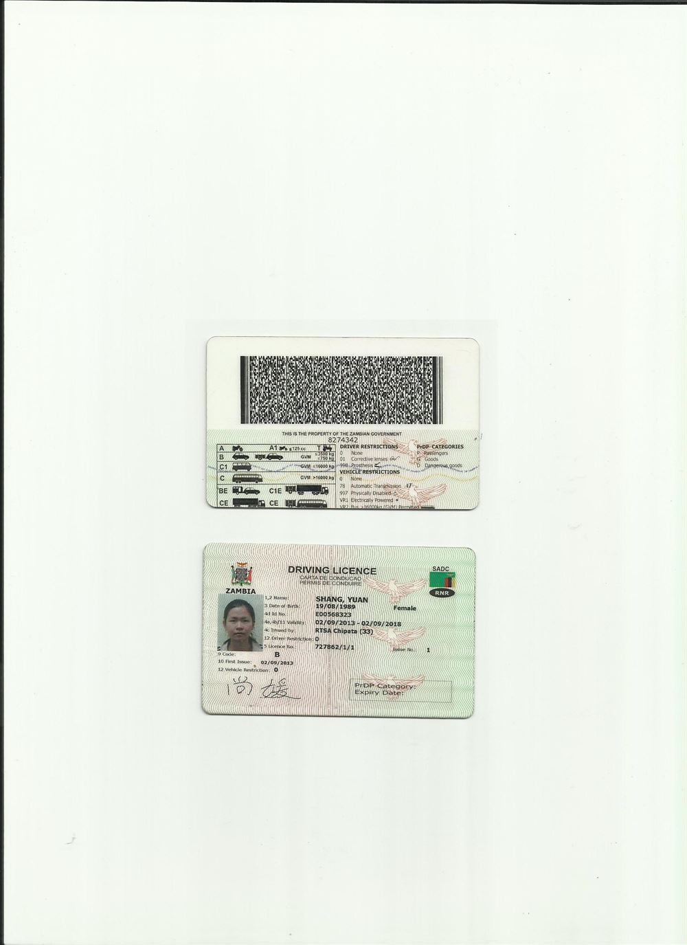 非洲地区-赞比亚驾照-咸阳市车管所认可翻译机构-