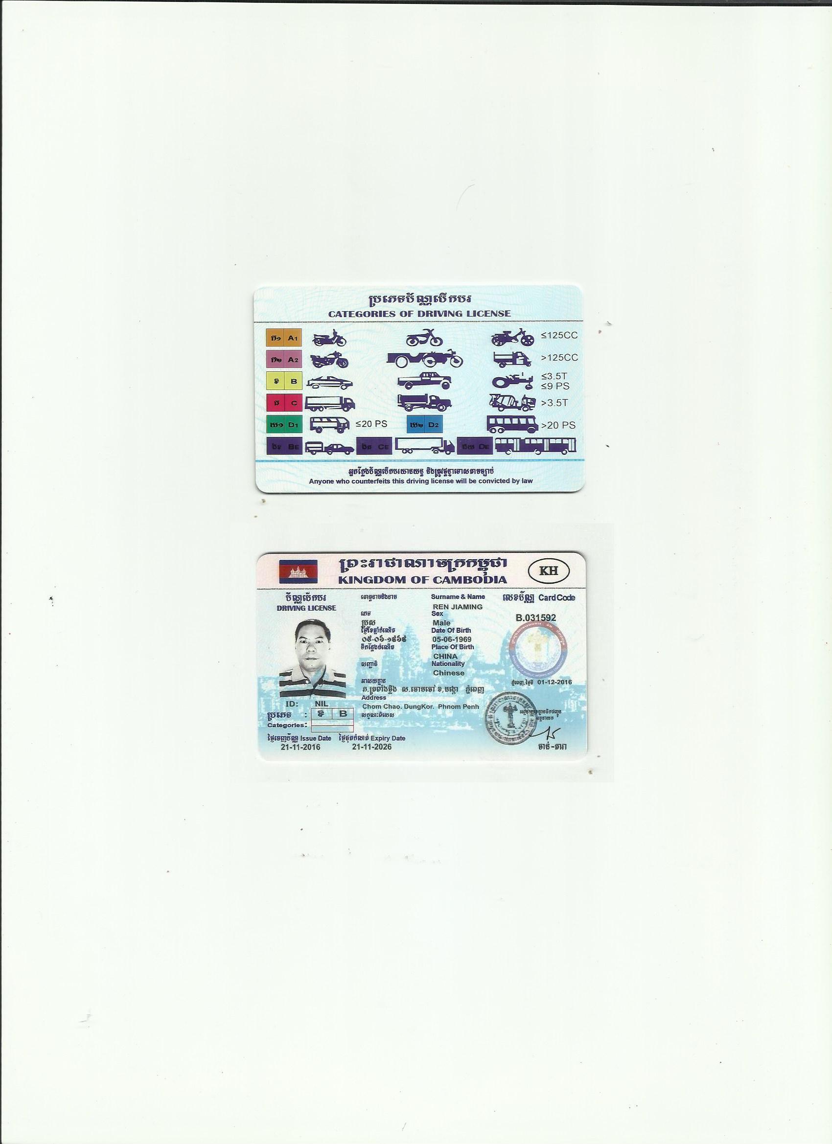 外籍驾照翻译模版-柬埔寨王国驾照翻译-咸阳市车管所认可翻译机构