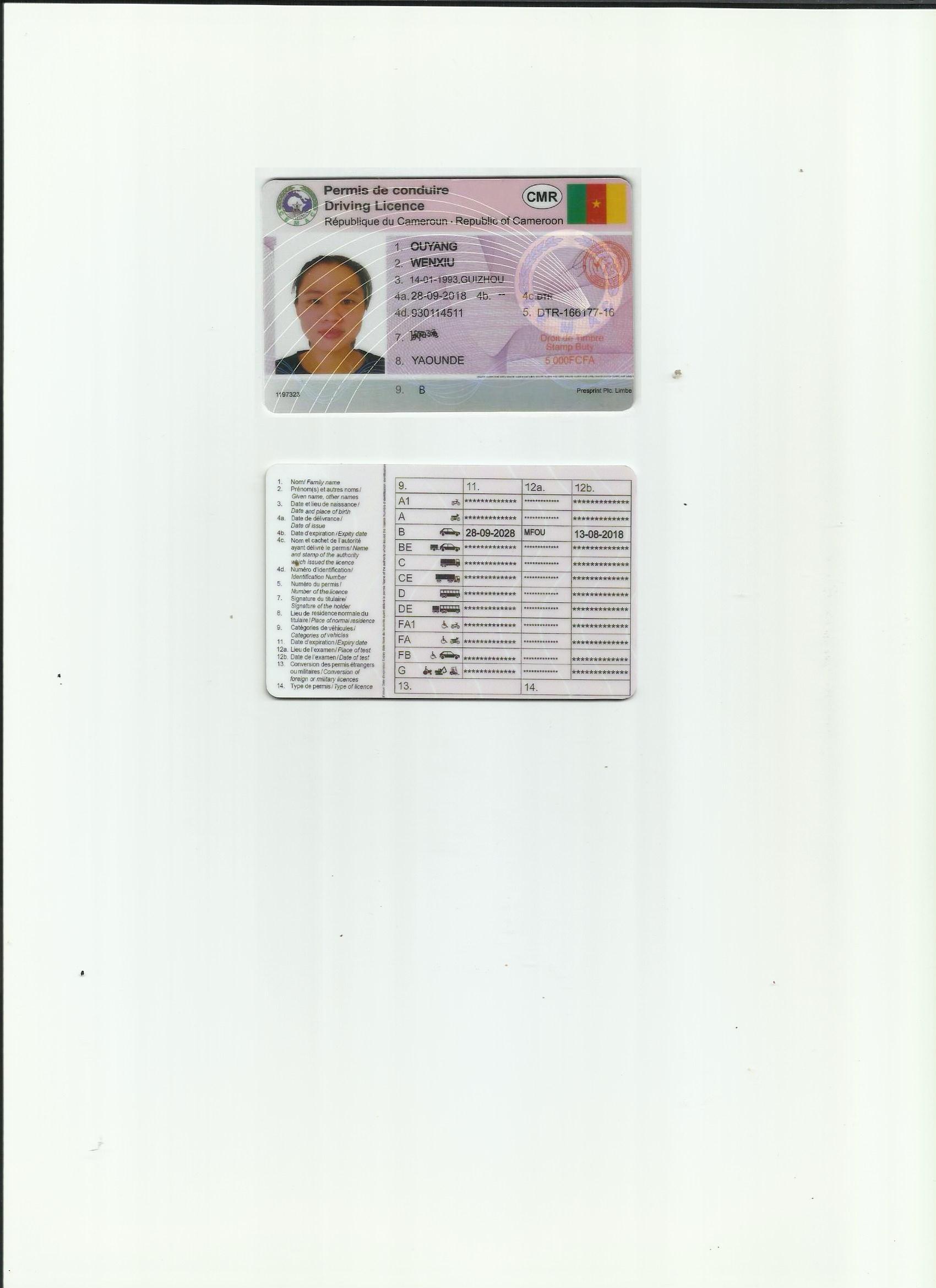 咸阳阿博尔翻译公司 您身边的翻译 咸阳市区随到随译 咸阳车管所认可 喀麦隆驾照翻译模版
