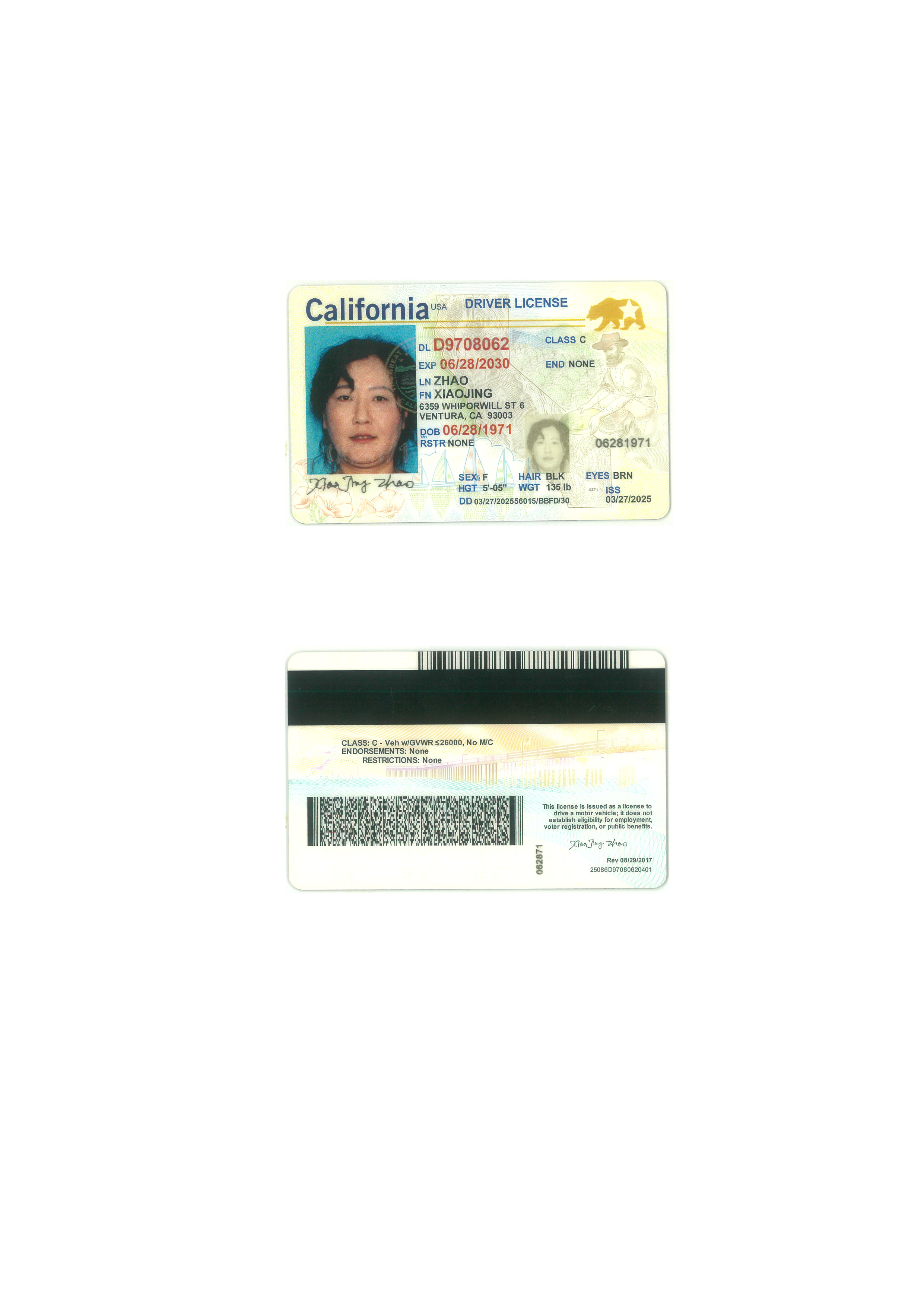 咸阳市/西安市/西咸新区/各类证件翻译/美国加州驾照翻译模版
