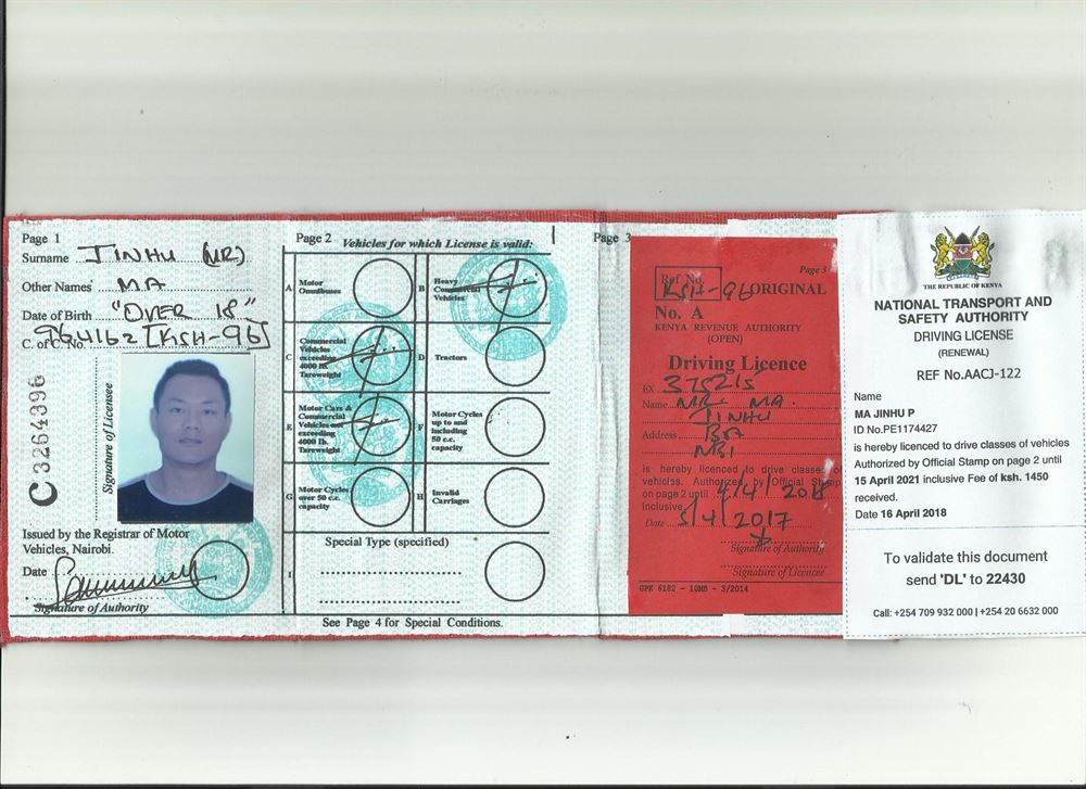 咸阳翻译 政府指定咸阳翻译 公安 车管所 肯尼亚驾照翻译模版