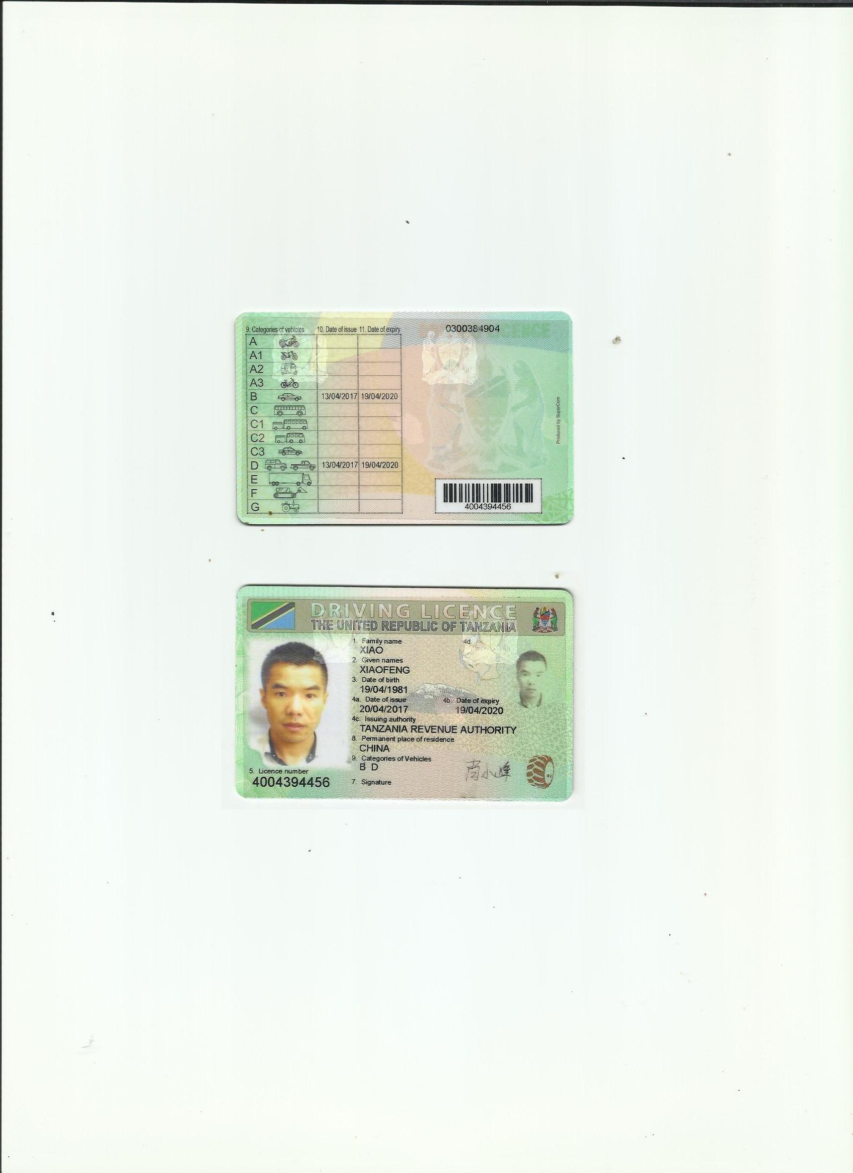 咸阳翻译 政府指定咸阳翻译 公安 车管所 非洲坦桑尼亚驾照翻译模版