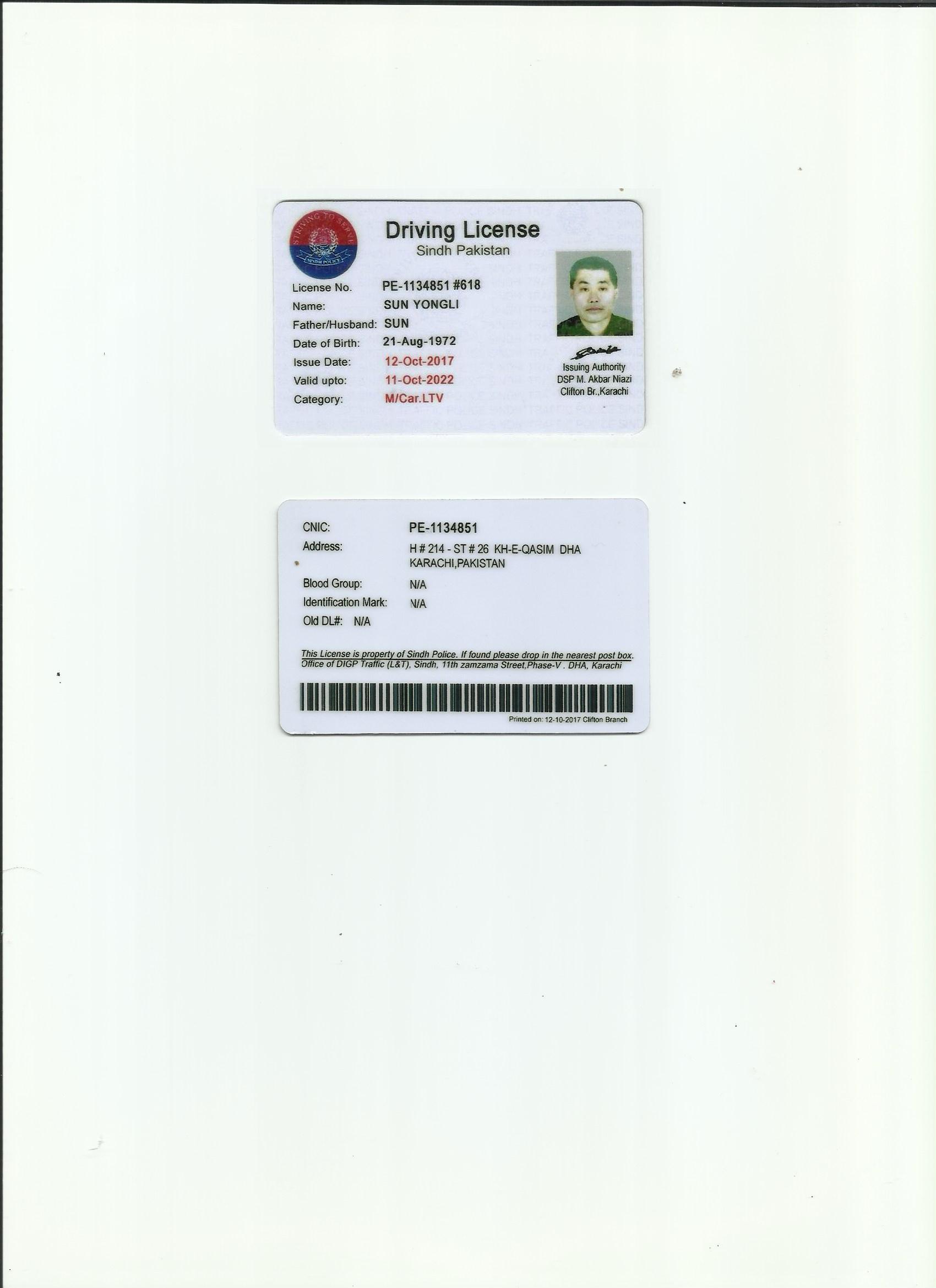 咸阳翻译 政府指定咸阳翻译 公安 车管所 巴基斯坦驾照翻译模版