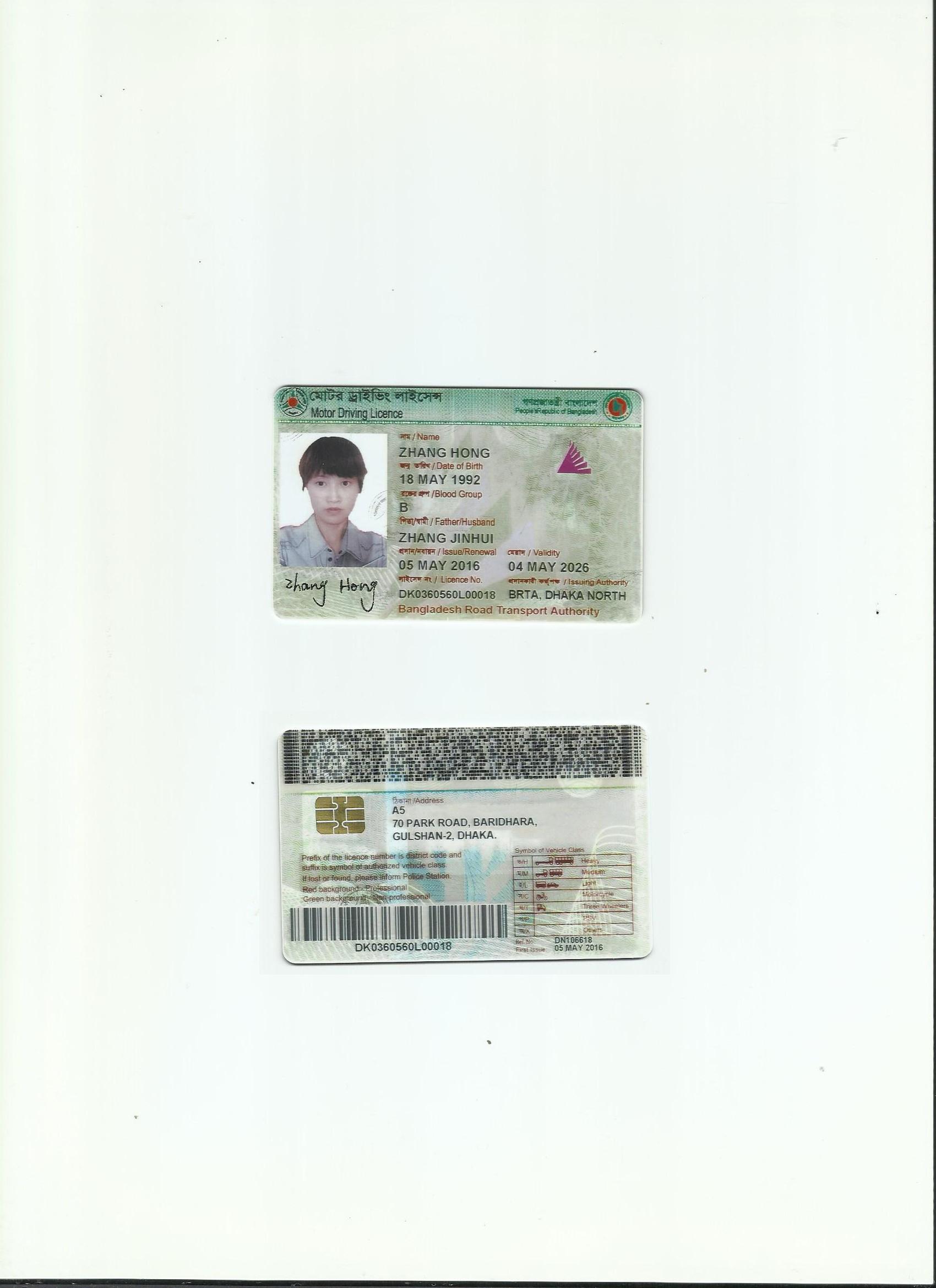 咸阳翻译 政府指定咸阳翻译 公安 车管所 孟加拉驾照翻译模版