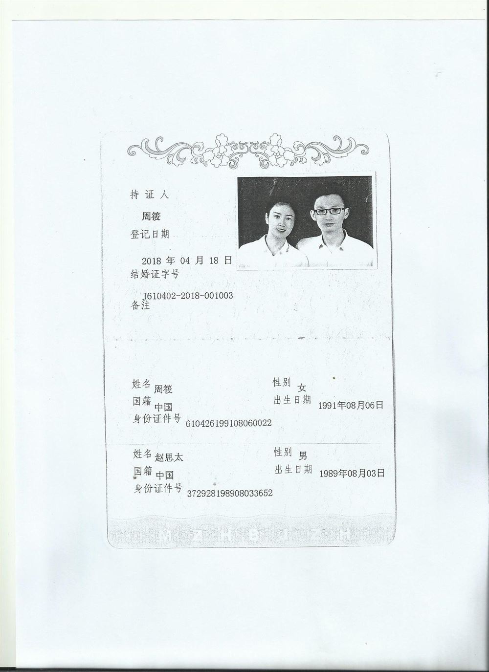 咸阳翻译 政府指定咸阳翻译 公安 车管所 结婚证翻译模版 公证
