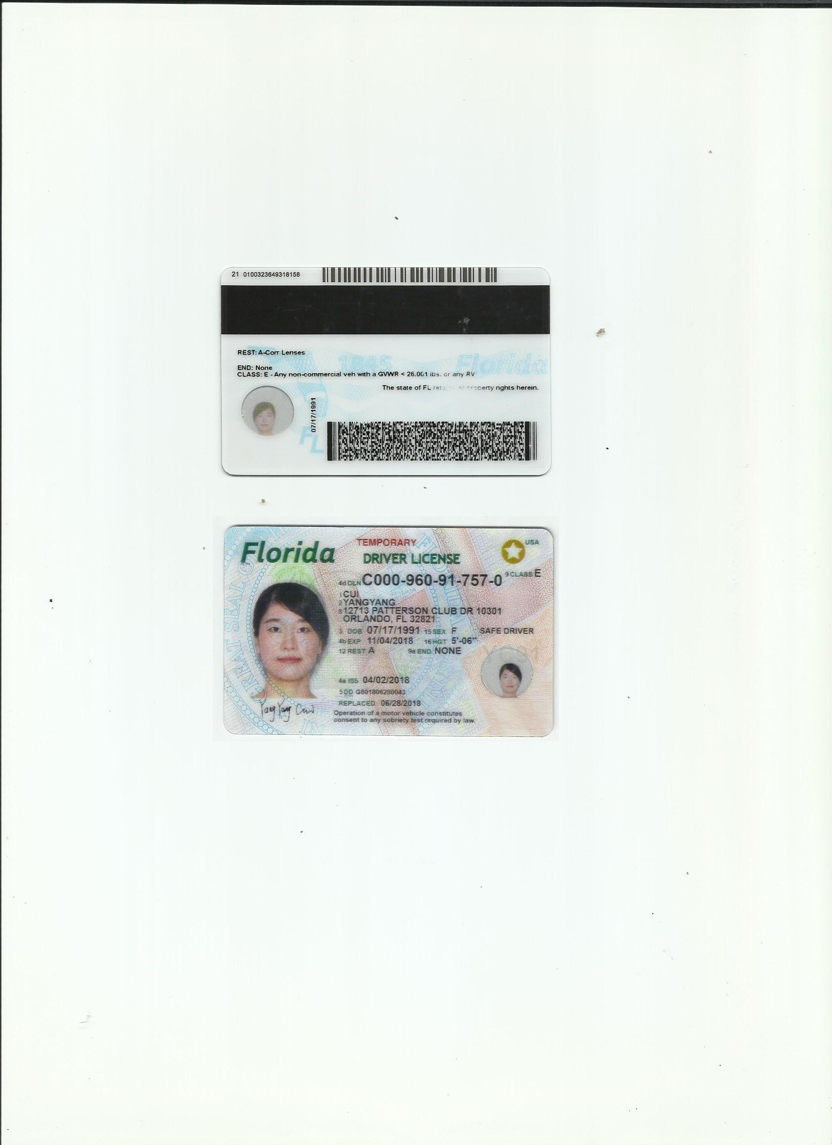 咸阳翻译 政府指定咸阳翻译 公安 车管所 美国佛罗里达州驾照翻译模版