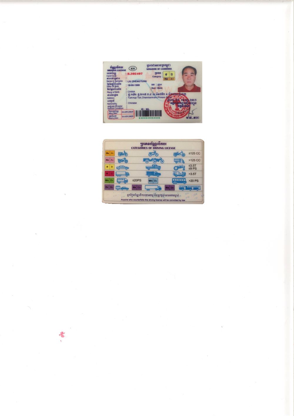柬埔寨驾照翻译模版-咸阳翻译公司