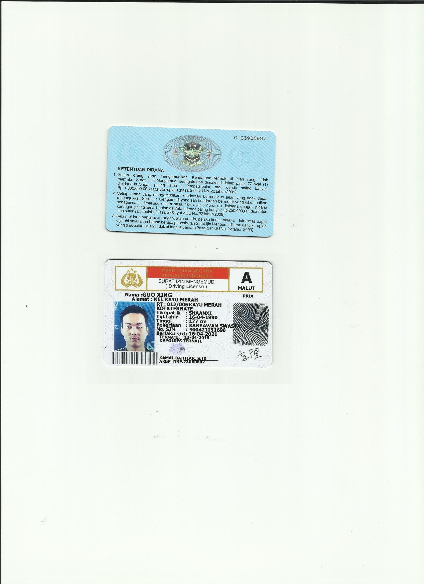 印尼驾照翻译模版-咸阳市车管所认可翻译公司