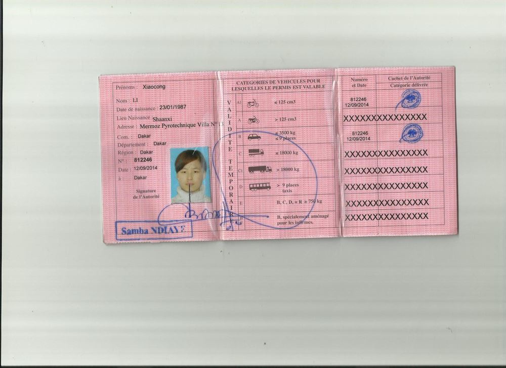 塞内加尔驾照翻译模版-咸阳市车管所认可翻译机构-咸阳翻译公司