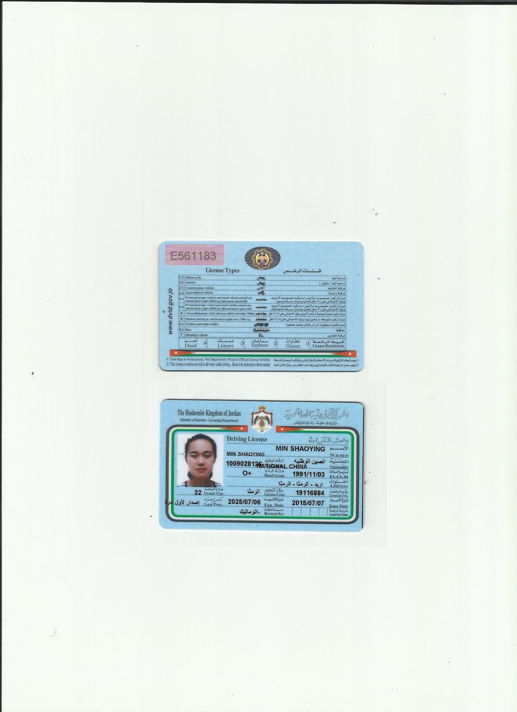 约旦驾照翻译模版-咸阳市驾照翻译中心-咸阳市外籍驾照专业翻译