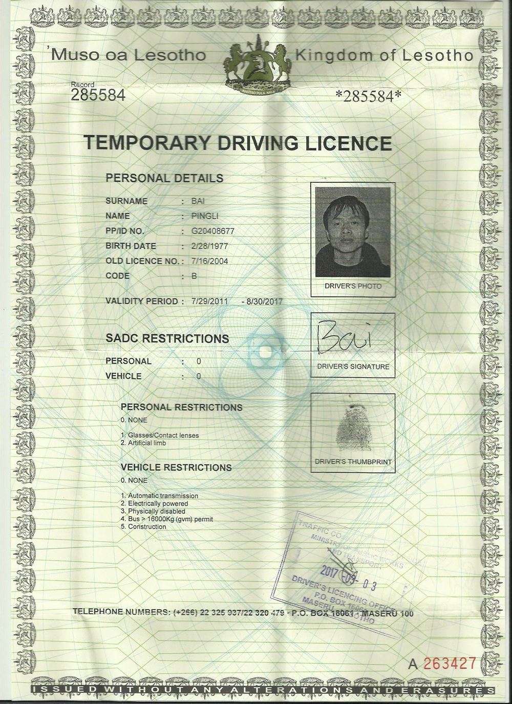莱索托驾照翻译模版-咸阳外籍驾照翻译中心