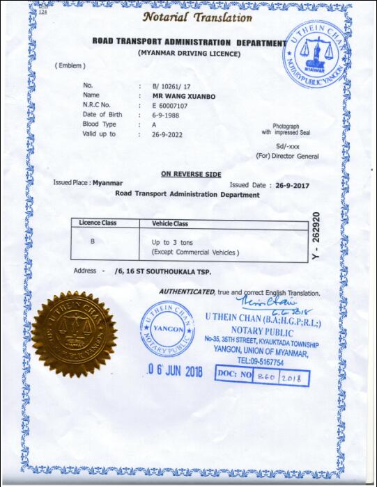 缅甸驾照情况说明翻译模版 咸阳专业国外驾照翻译公司 方便国内驾照换证 资质备案的驾照翻译