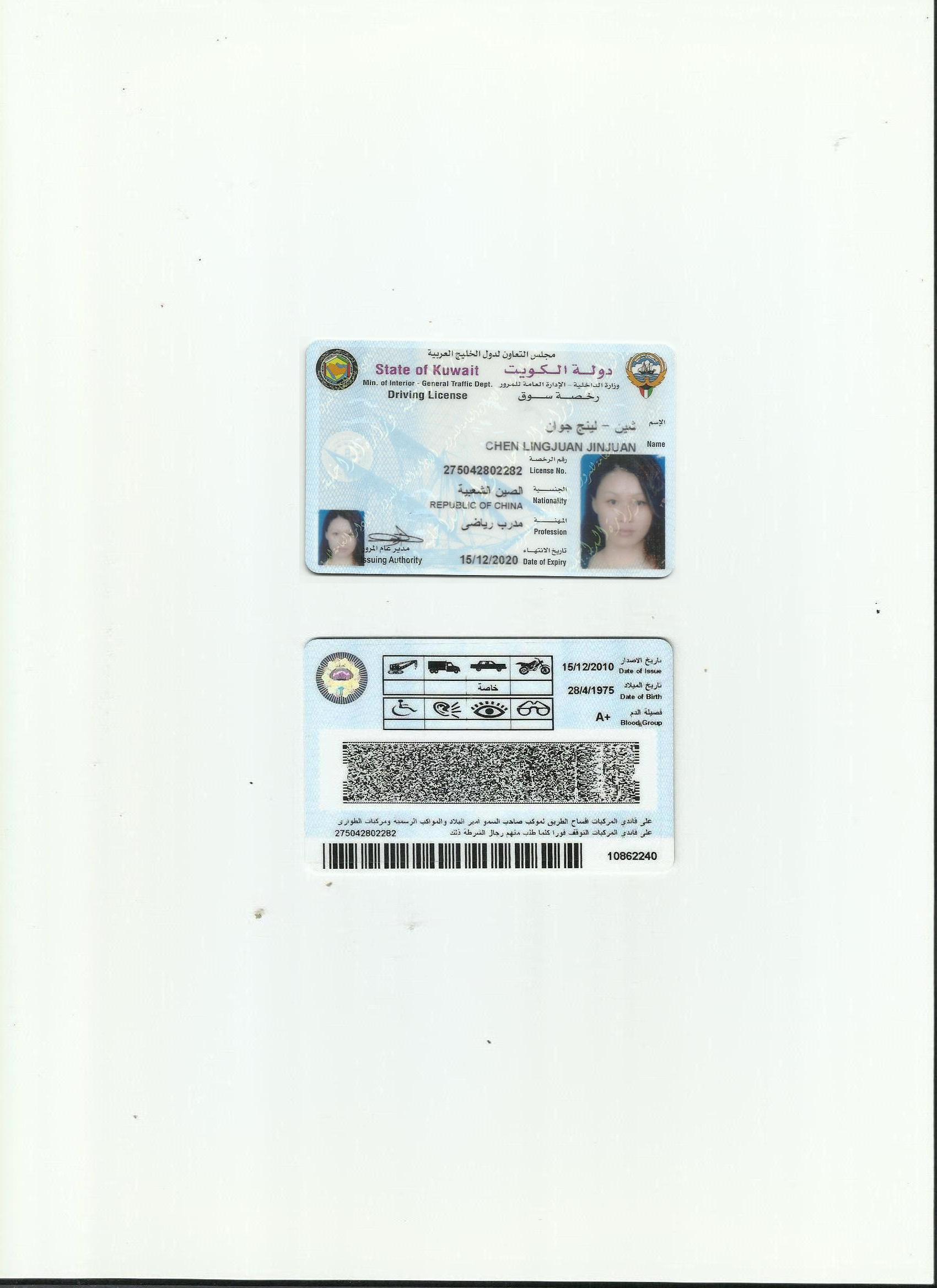 咸阳翻译 政府指定咸阳翻译 公安 车管所 科威特驾照翻译模版